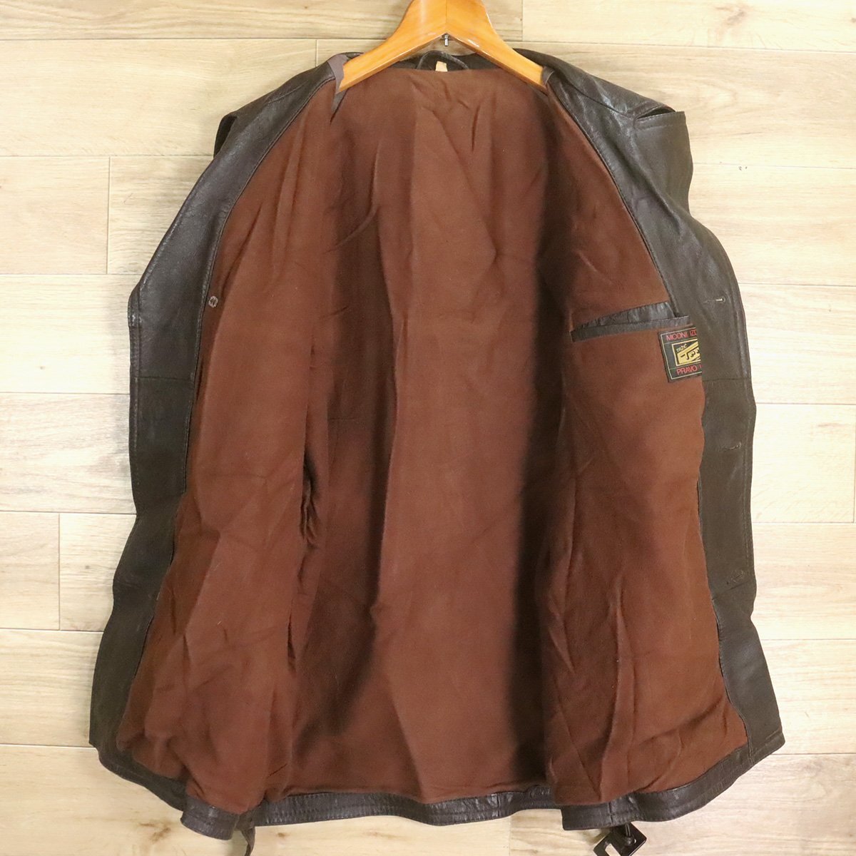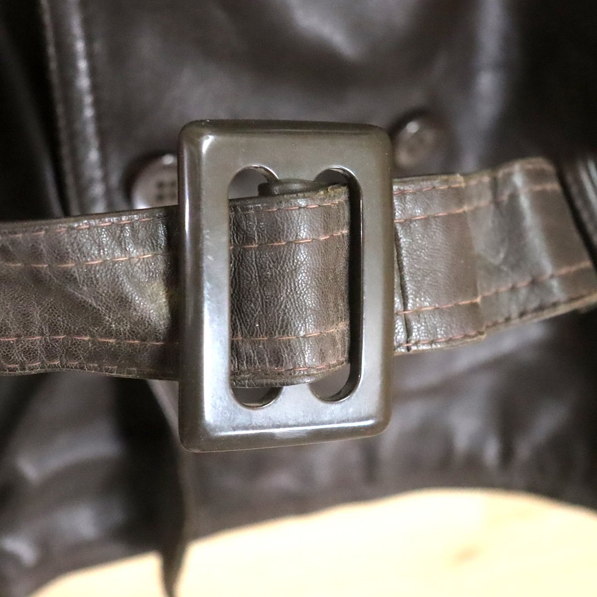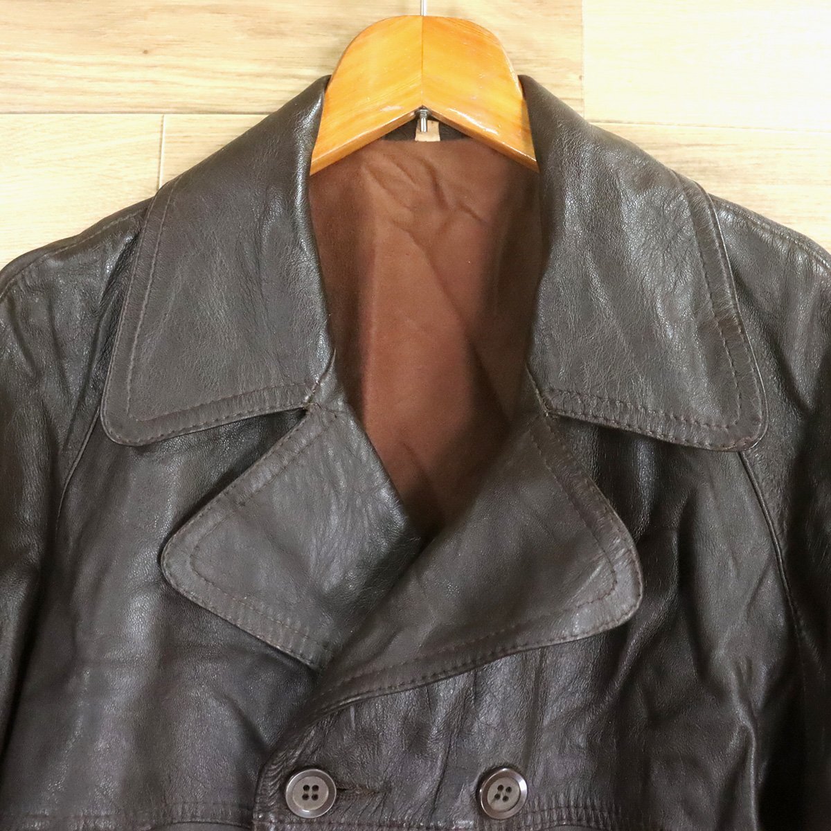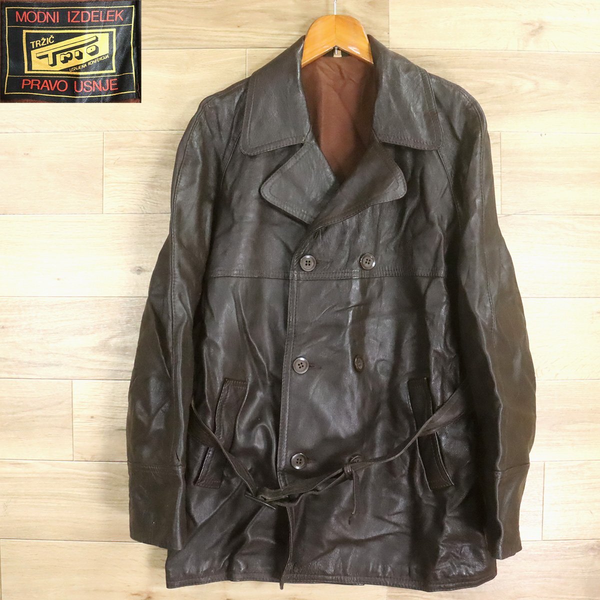 X9R/D12.9-5 ユーロヴィンテージ TRZIC Trio レザーカーコート ダブルブレスト 本革 レザーコート 革コート 皮コート ブラウン