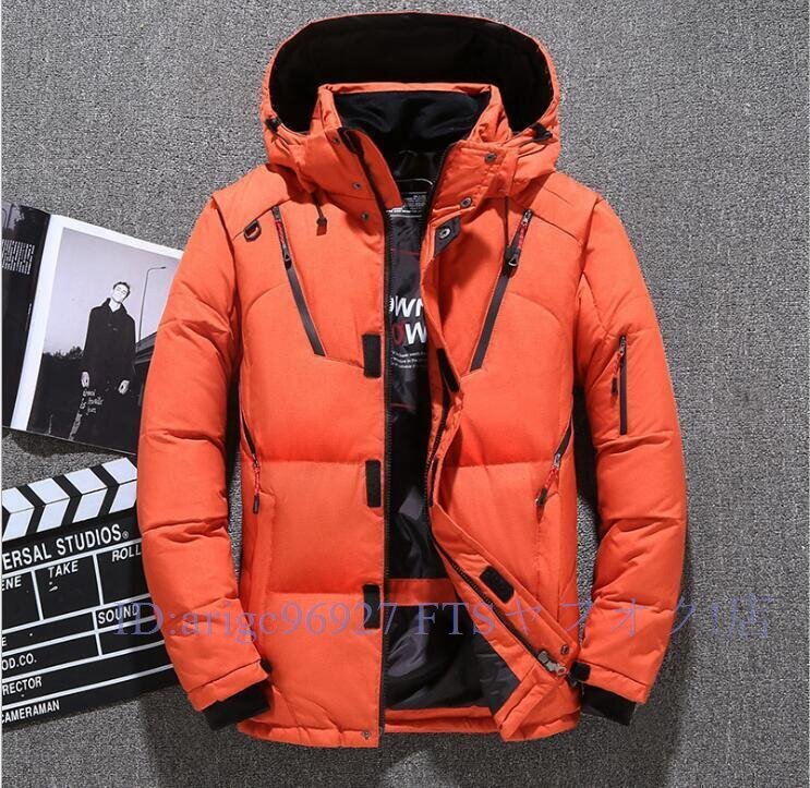 ★新品ダウンジャケット メンズ 軽量 ダウンコート フード付き 脱着可能 防風 防寒 ダウン90% アウター 冬物 冬服 オレンジ