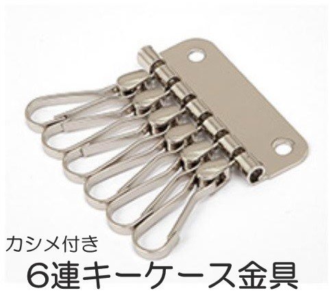 6連 キーホルダー金具 シルバー レザークラフト 部品 道具 カシメ付き