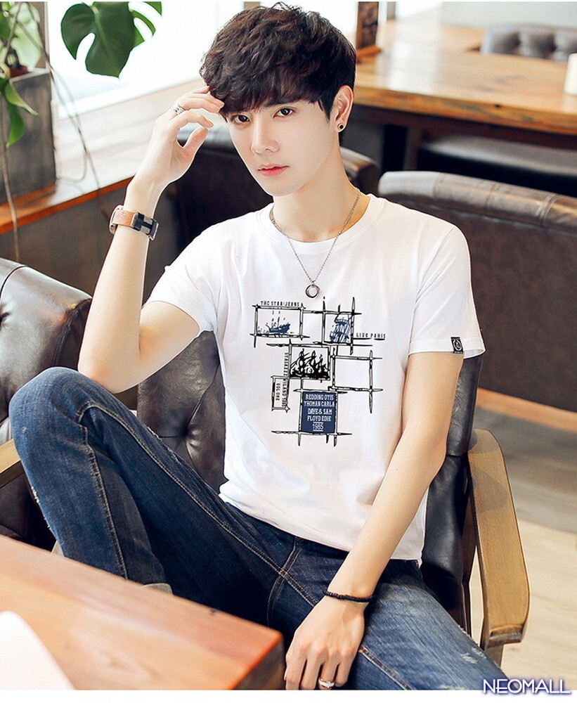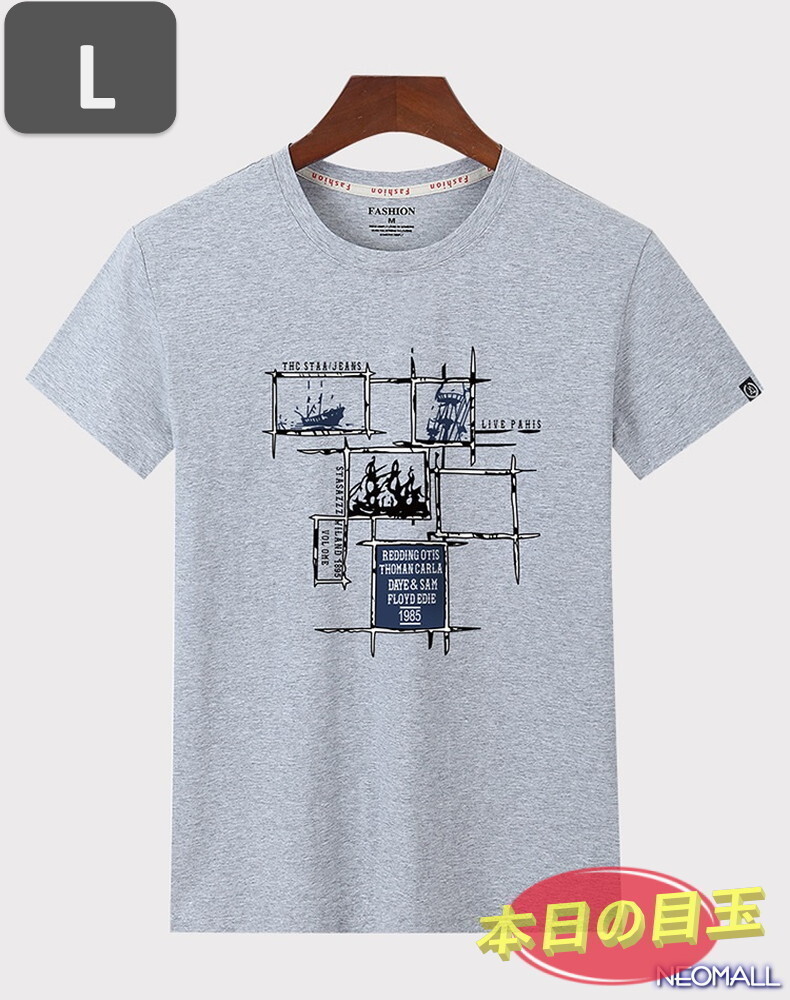 本日のお買得 ☆ 丸首 半袖 Tシャツ【461】 グレー Lサイズ トップス シャツ シンプル イラスト デザイン 春夏