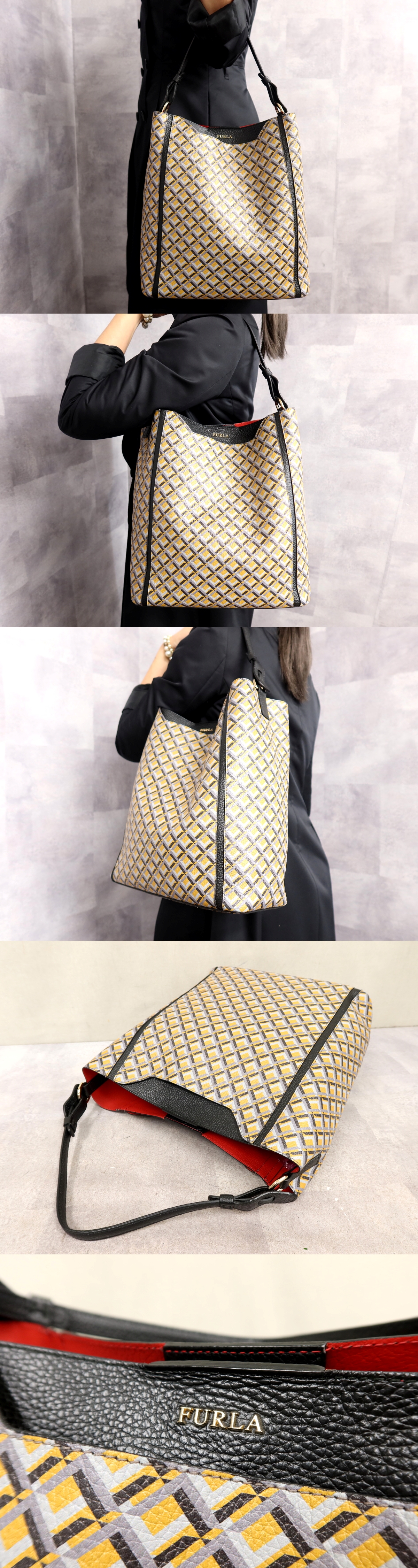 ●超美品●新品同様●FURLA フルラ●ファンタジア●ロゴ金具●カーフ レザー 本革●ショルダー バッグ●マルチカラー●肩掛け●B5●Js63587