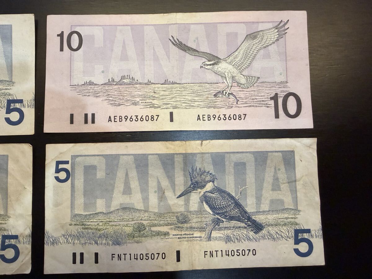 カナダ 5ドル 10ドル 紙幣 4枚セット 合計25ドル分 1986年 1989年 古銭 Canada, 5 Dollars, 1986, Banknote