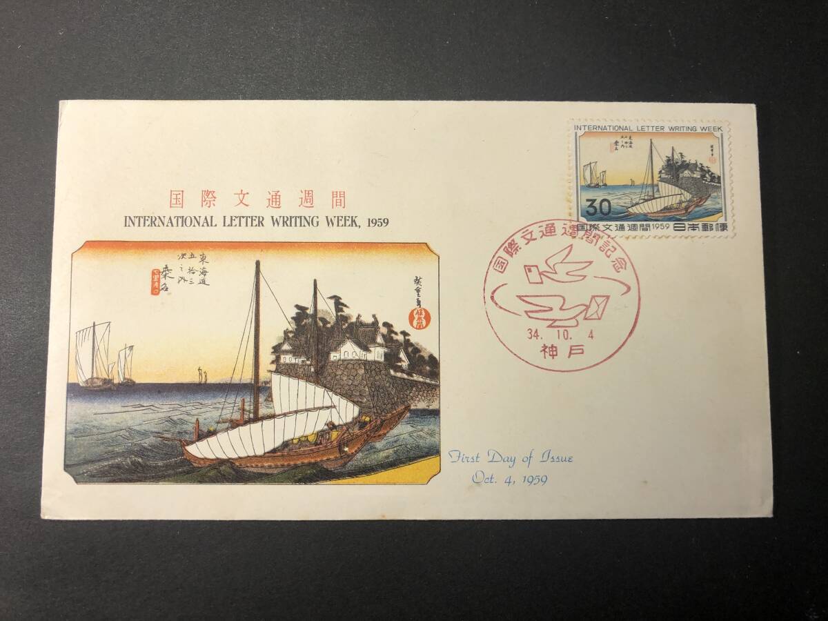 ★FDC 初日カバー★国際文通週間 「桑名(安藤広重)」 JSB版 昭和34年発行 Y7815