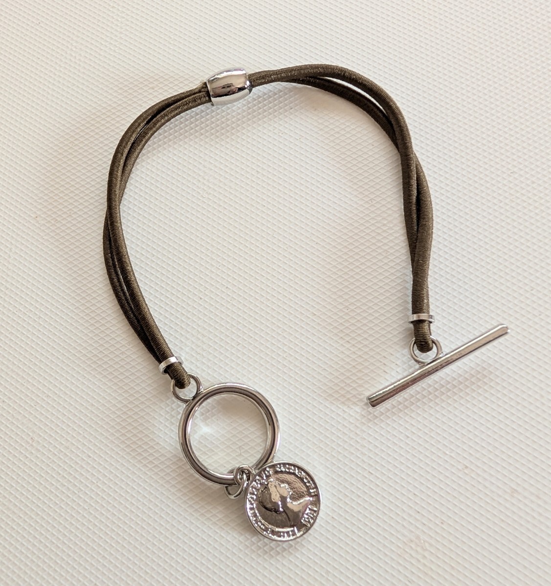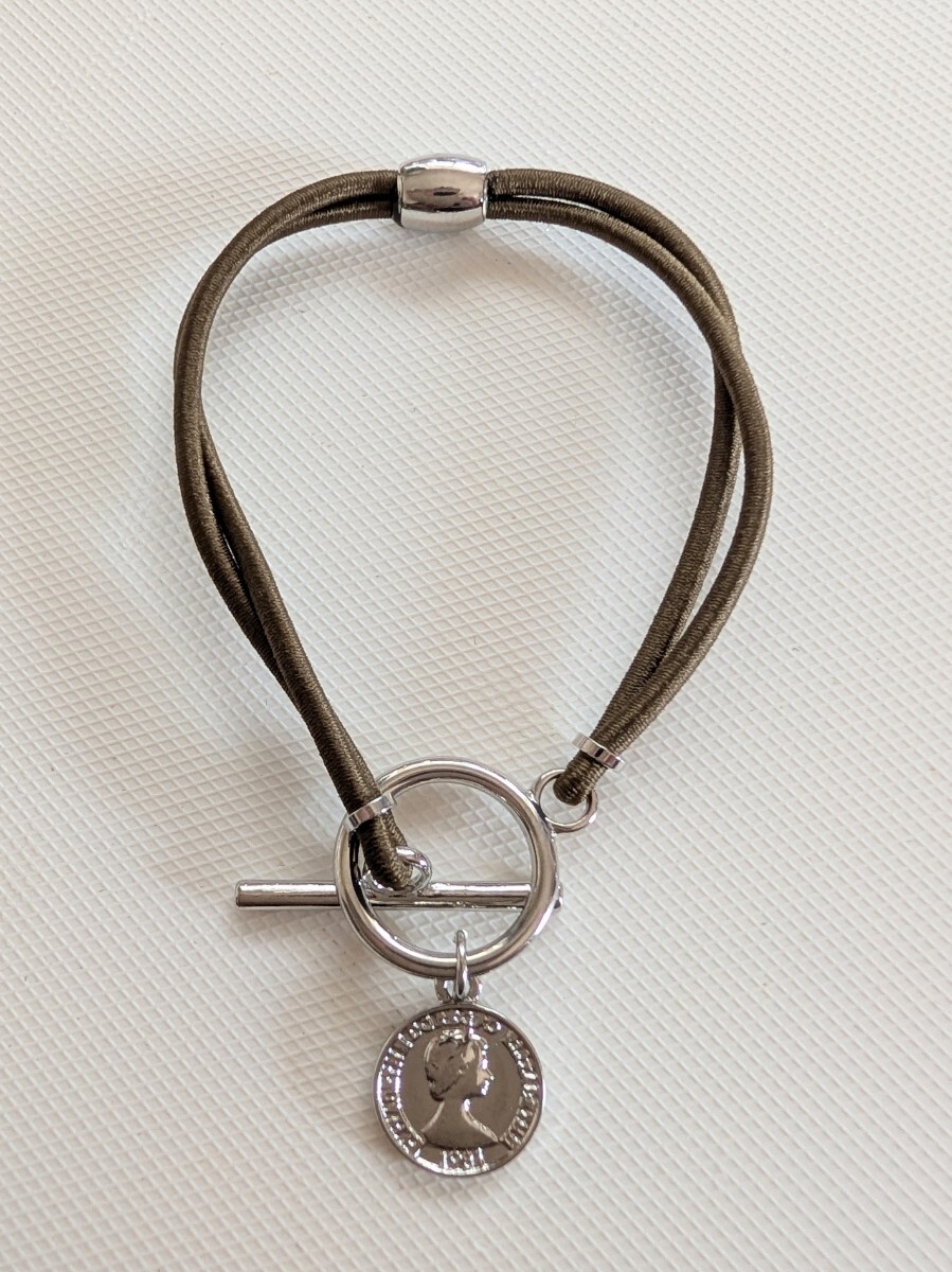 こちらは、新品未使用 Flowering 外貨コインモチーフ 静電気軽減ヘアブレスレット になります♪