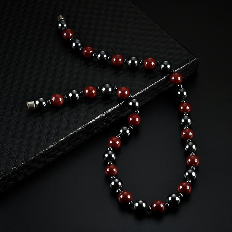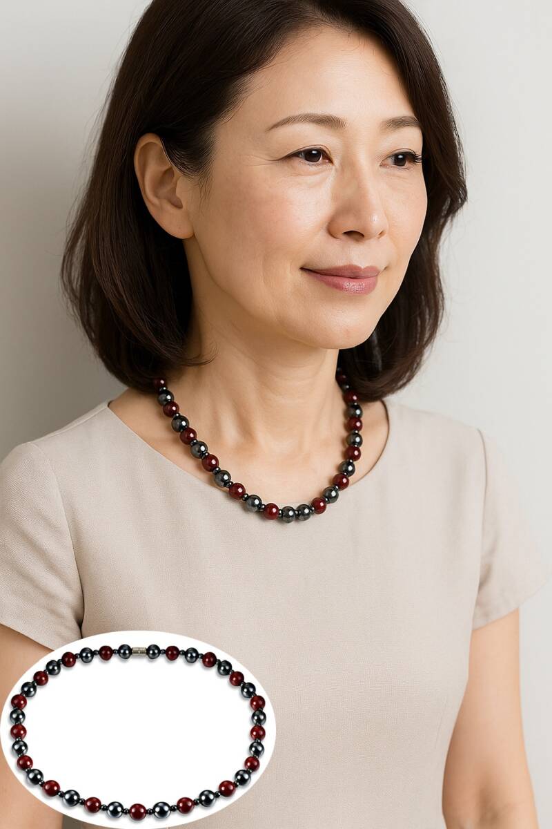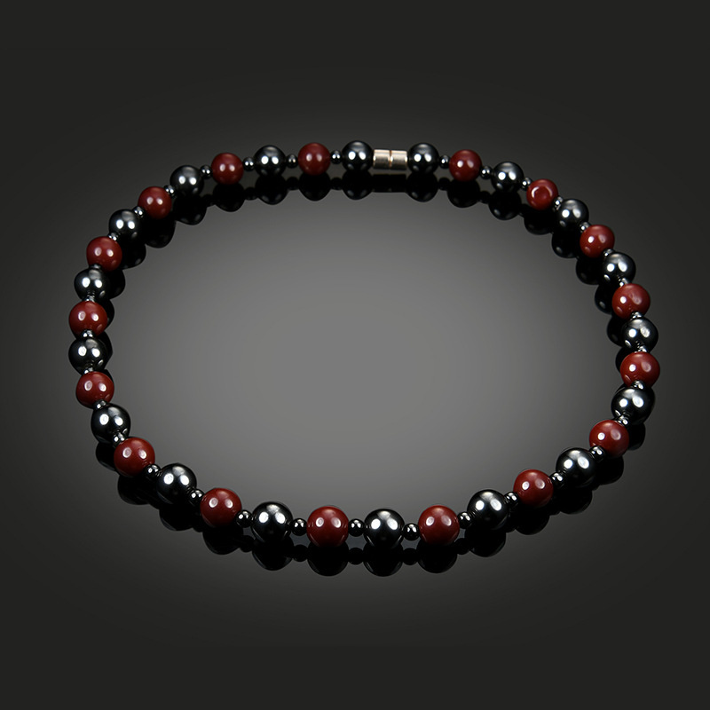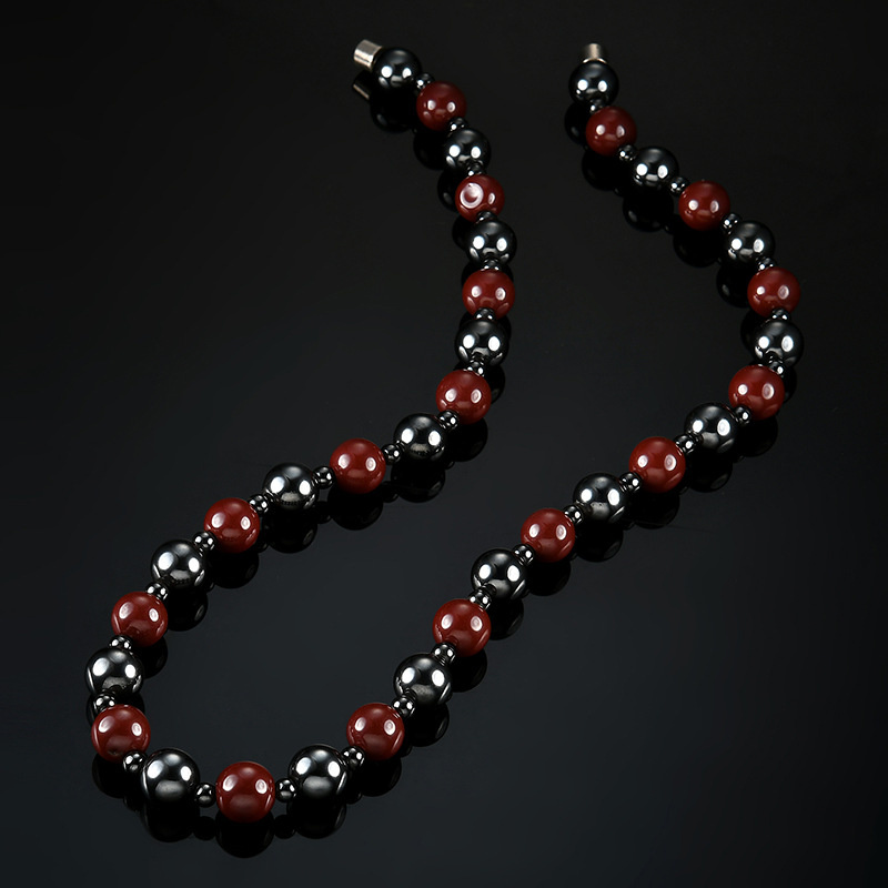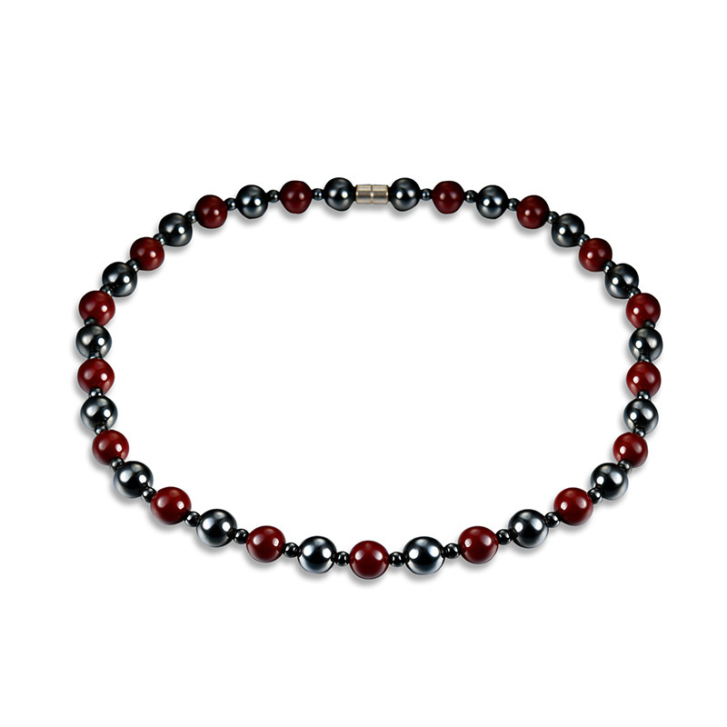 【天然石使用 ヘマタイト 黒胆石 】磁気ヘマタイト&ガラスビーズネックレス 健康・美容・保健に 磁石クラスプ プレゼントにも SSP251
