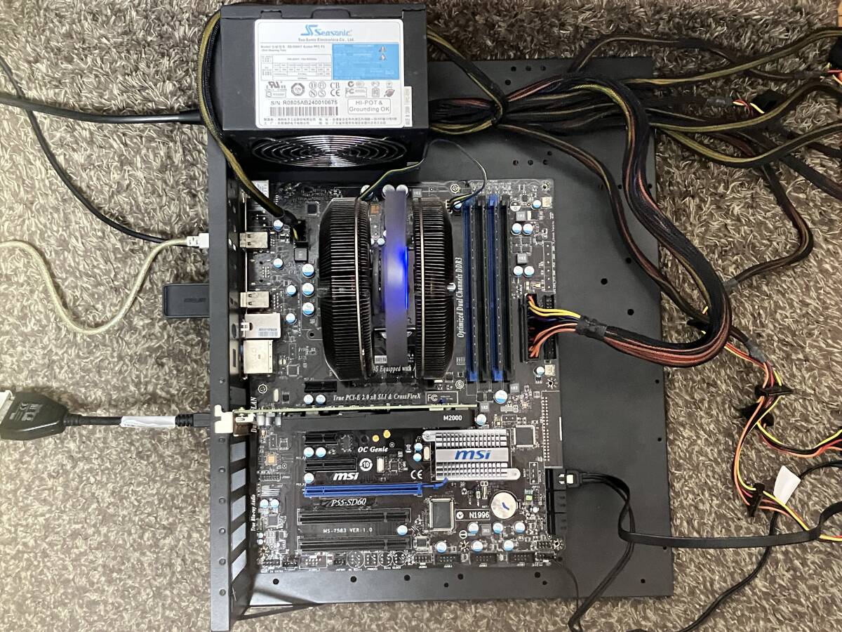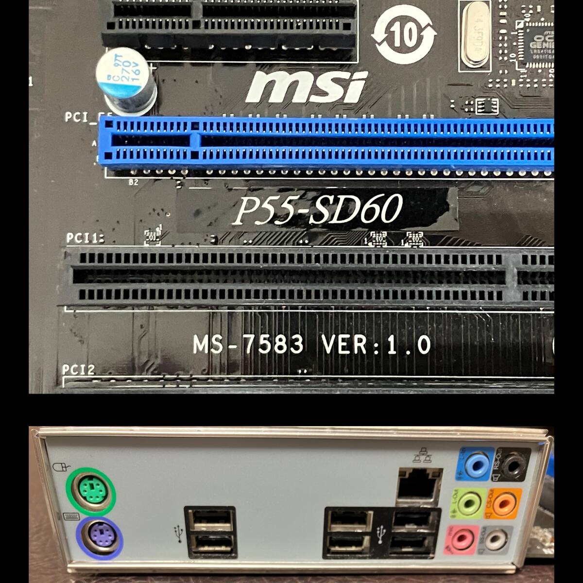 MSIのATX規格のマザーボードである MSI P55-SD60 MS-7583 ver:1.0 を出品します。 USBブート非対応、UEFI非対応なマザーボードです。 元となったのは、 MSI P55-GD65 であり、 それからいくつかの表面実装部品をオミットし、 OEM提供されたのが本品であるようです。 だからなのか、 MSI P55-GD65のbiosを ぶち込むことができるらしいです。 興味あるなら、方法調べた上で行ってみてください。 なお、bios書き換えは、 windowsライセンス紐づけ飛ぶ可能性あるので ご注意ください。 10枚目の写真のように、メモリ4枚挿しでCPU付けて、 5枚目~6枚目の写真の通り、BIOSが起動することを確認、 7枚目~9枚目の写真の通り、 windows 10 home 64bit LEGACY(MBR)で起動することと windows 10 home 64bitのデジタルライセンス認証済状態 であることを確認しました bios起動確認の際に各端子の動作の確認を行いました。 イヤフォン挿しての音出し確認はwindows10起動させて確認しました。 ・USB全ポート ・PCI-EXPRESS長い青色のやつ二つ (グラフィックボード Quadro K2200 4GB 、Quadro M2000 4GB 、Geforece GTX 760 2GB を使用) ・SATA全ポート ・メモリスロット →メモリ4枚挿し ・CPUソケット →CPUはintel core i7 870、intel xeon x3430、intel Pentium G6950で確認。 ・背面イヤフォンジャック →有線イヤフォン繋いで音出たのを確認。 DDR3のECCでない通常のメモリで動作します。 LGA1156の第一世代(Lynnfield)のintelのxeonでないCPU→恐らく対応している? LGA1156の第一世代(Clarkdale)のintelのxeonでないCPU→恐らく対応している? LGA1156の第一世(Lynnfield)代のintelのxeon CPU→恐らく対応している? LGA1156の第一世代(Clarkdale)のintelのxeon CPU→恐らく対応している? 詳しい機能・互換性・スペックに関しては、MSI P55-GD65 のものを参照したらだいたい近しいものが得られるかと思います。 オマケとして、windows 10 home 64bit LEGACY(MBR) 環境 をインストールした 2.5インチ 320GB hddとsataケーブルを同梱しておきますので ライセンス通っていることの確認などに使っていただけたらと思います。 |