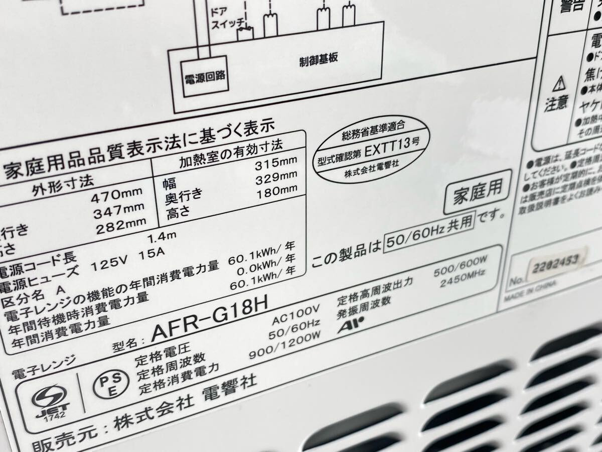 ★美品 ZEPEAL ゼピール AFR-G18H フラットテーブル 電子レンジ ホワイト 2022年製 50/60Hz 共用 ヘルツフリー 現状品 管理YO698
