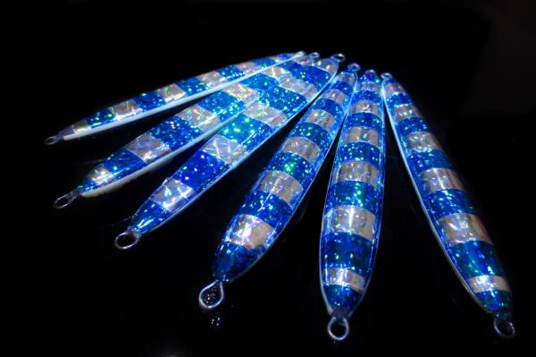 ☆売れてます!【180gケイムラスロージグ ブルーホログラム 夜光】 真鯛 ブリ ヒラマサ 船釣り磯釣り ジギング ハンドメイド