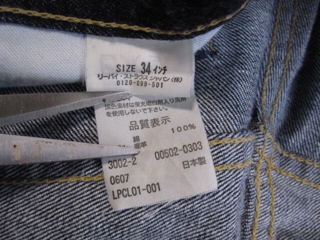 Levi's リーバイス 502 鹿革パッチ デニムパンツ 日本製 W34/L34 綿100 使用少ないキレイ ジーパン 古着