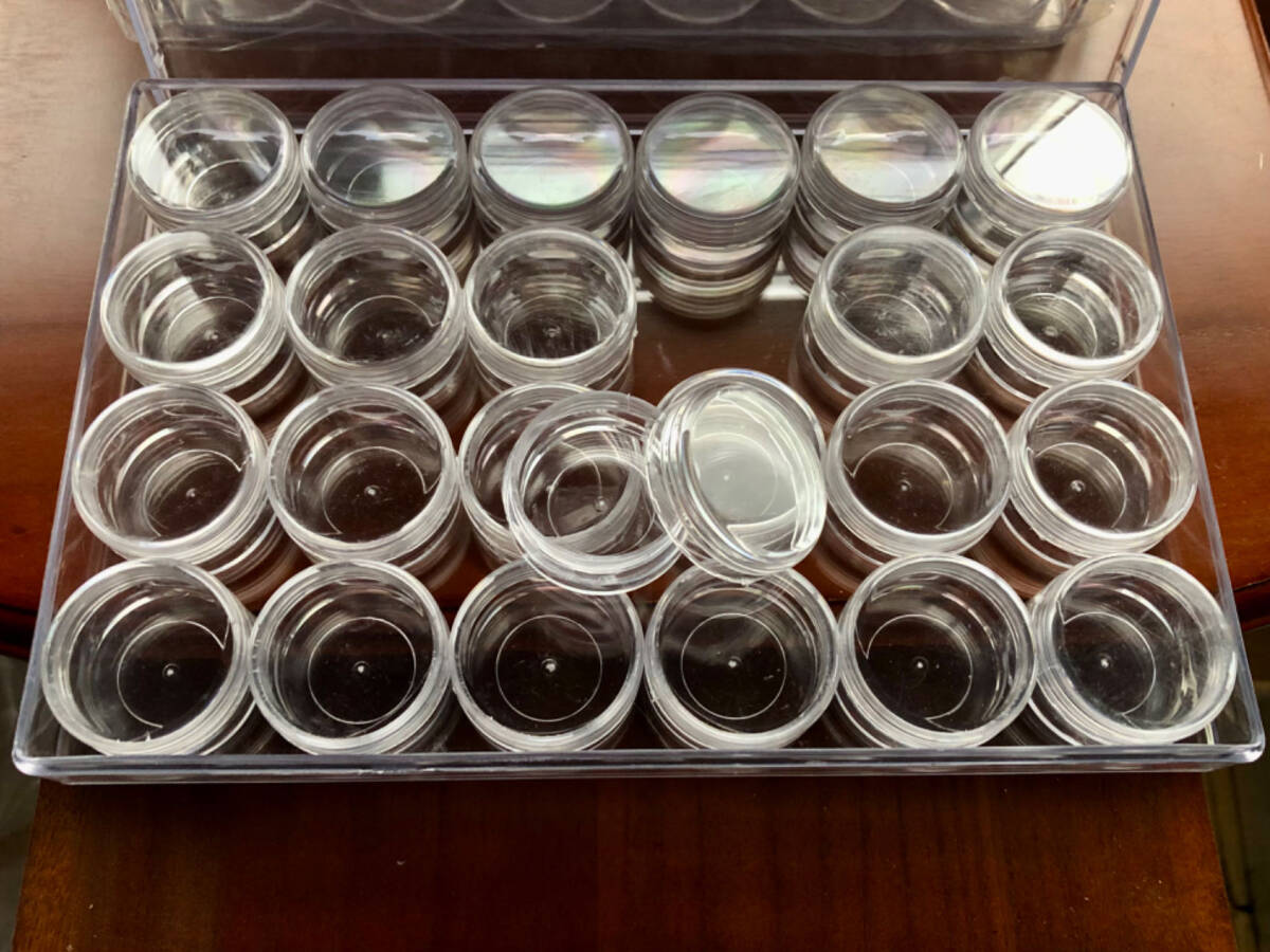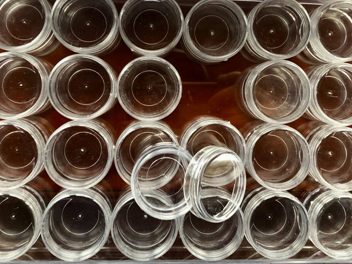 良質アクリルケース ◎ ネジ式丸小ケース24個入箱、激安出品。