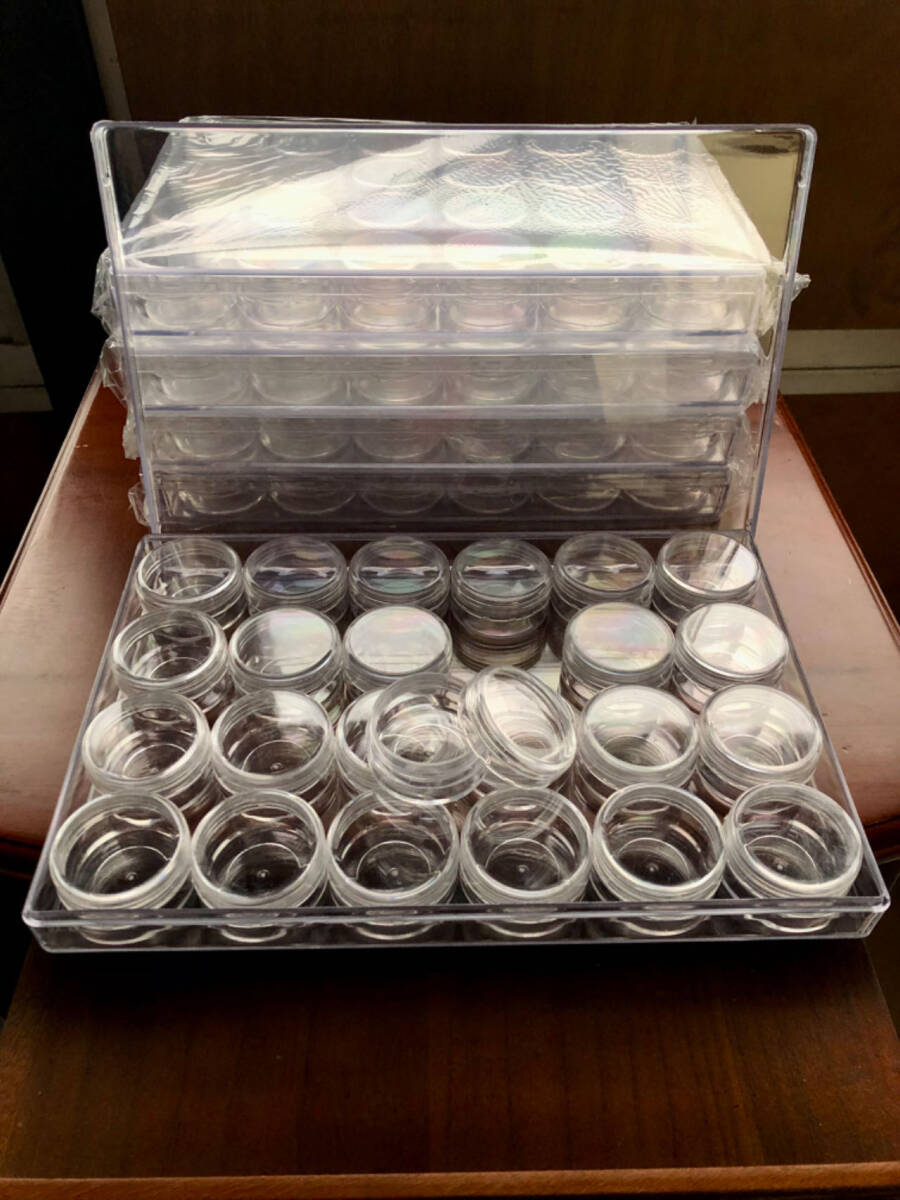 良質アクリルケース ◎ 丸小ネジ式ケース24個入り箱 激安出品!(ビーズ、アクセサリー、小物整理、等に)
