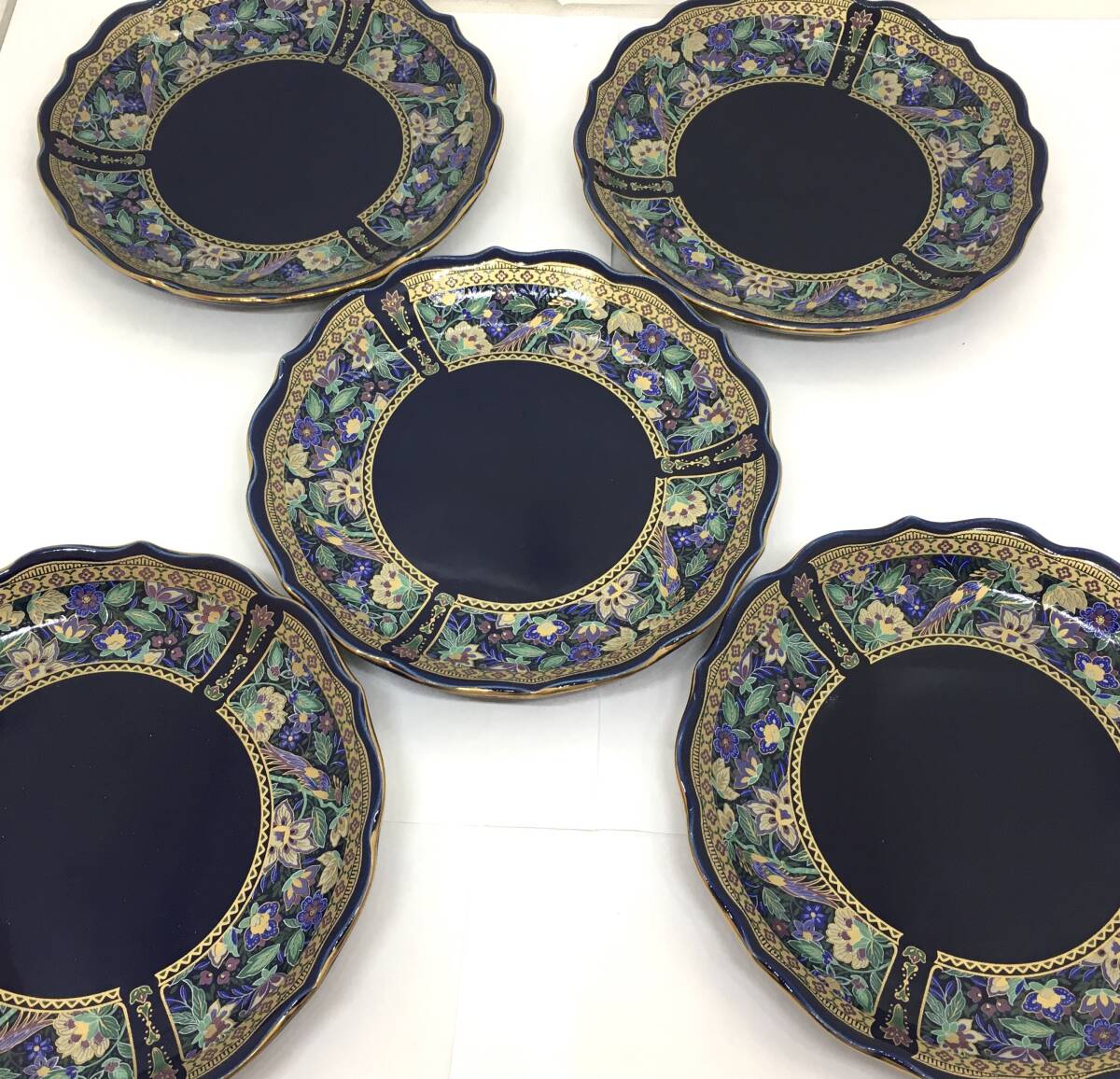 【未使用保管品】生活優器 Elegance Collection 大皿1枚 小皿5枚 セット 金彩 孔雀柄