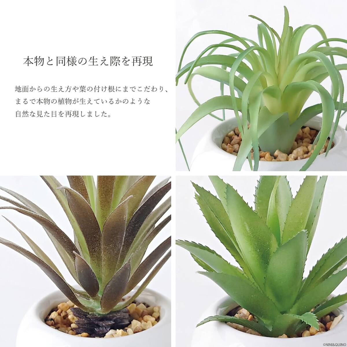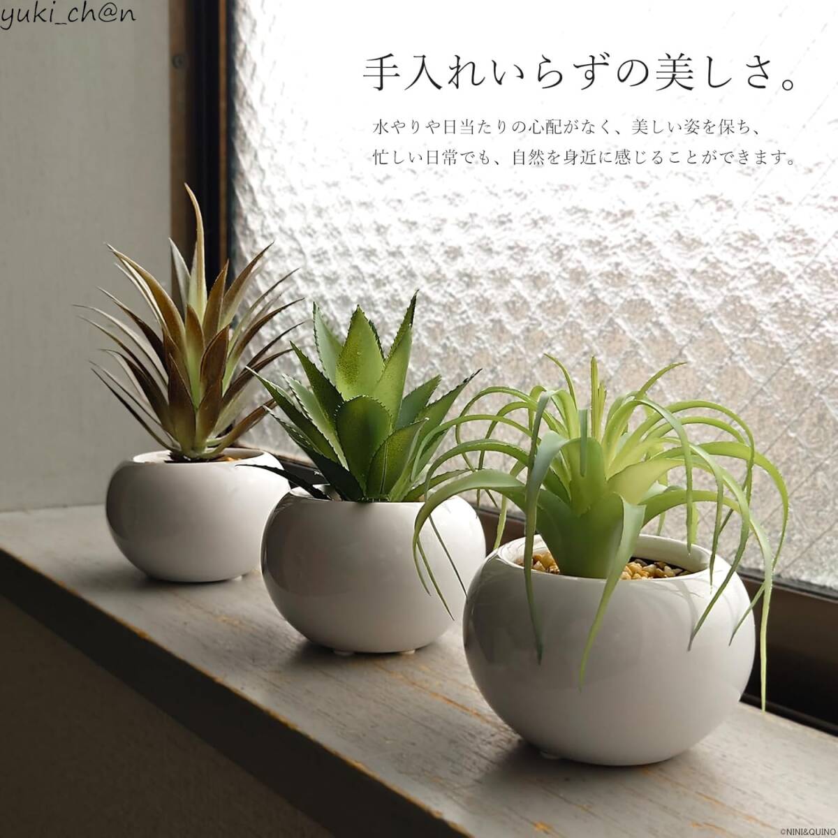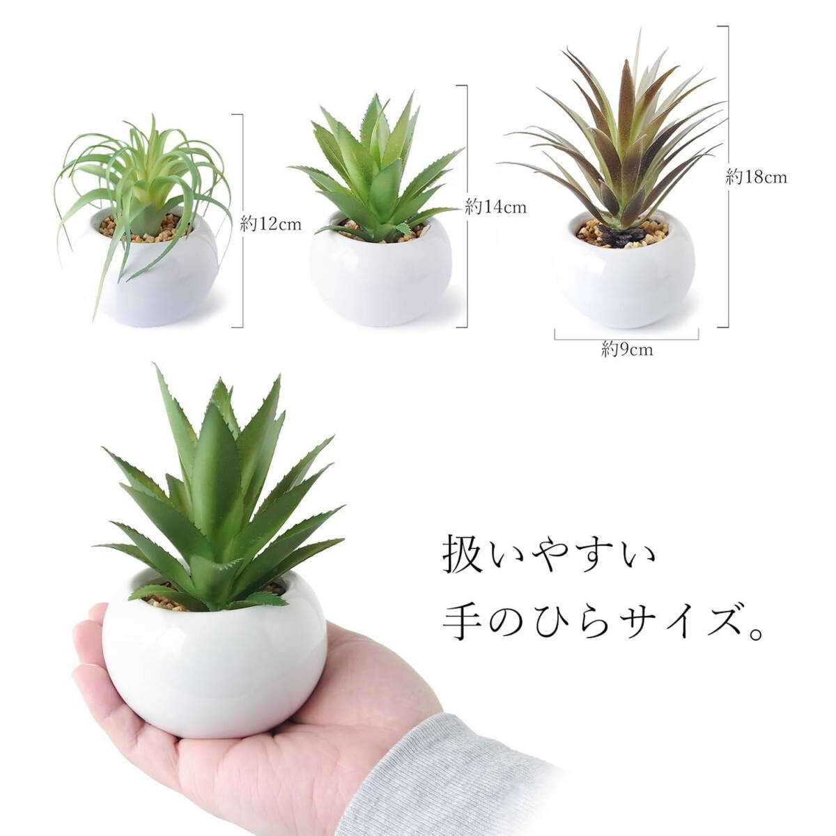 フェイクグリーン ミニポット エアプランツ アナナス アガベ 3点セット 造花 鉢 観葉植物 おしゃれ インテリア卓上 緑 植物 鉢植え