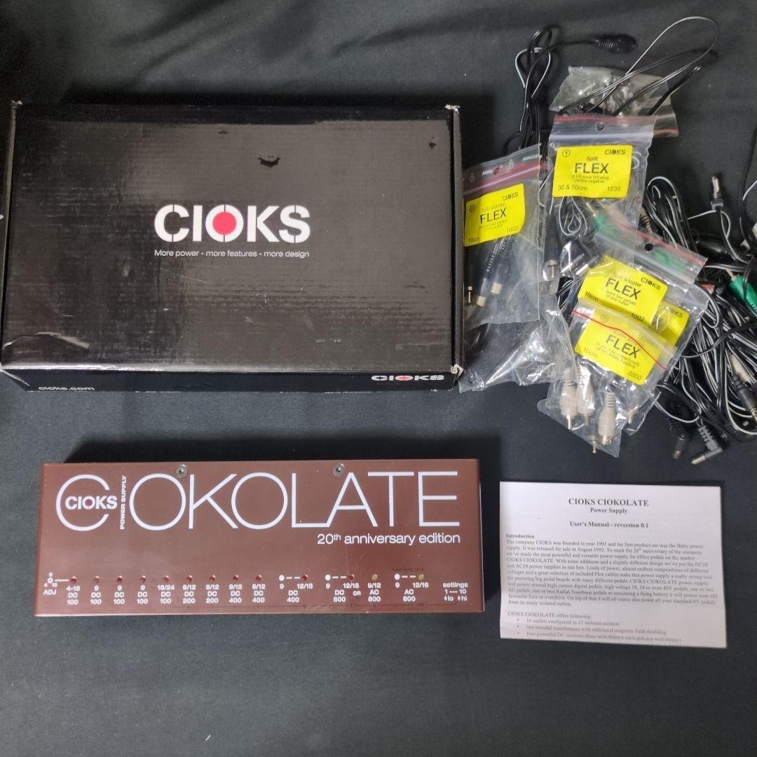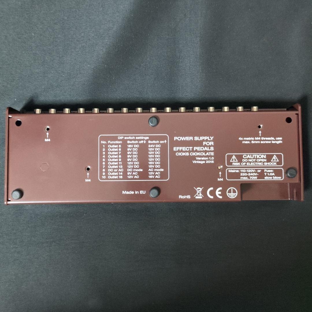 CIOKS(チョークス)製の高性能パワーサプライ「CIOKOLATE」の20周年記念モデルです。プロ仕様のエフェクター電源として定評があり、16系統の多出力端子(DC9V〜24V/AC16Vなど)を備え、あらゆるペダルボードに対応可能。DIPスイッチで各出力の電圧設定ができ、柔軟性の高い設計が魅力です。