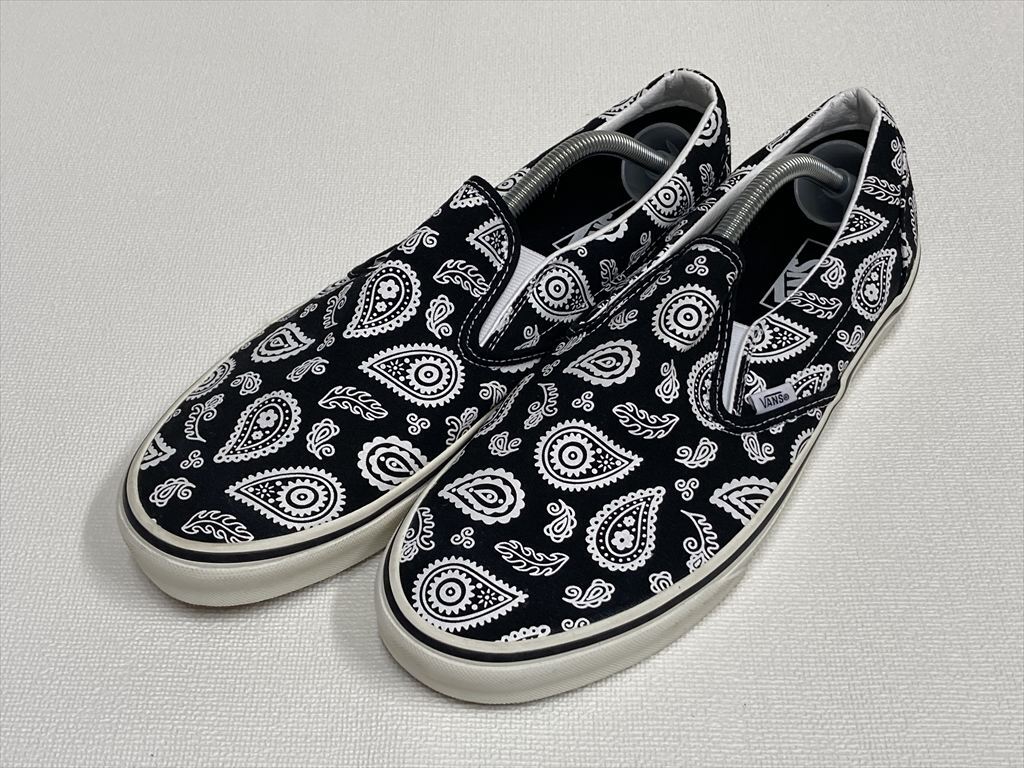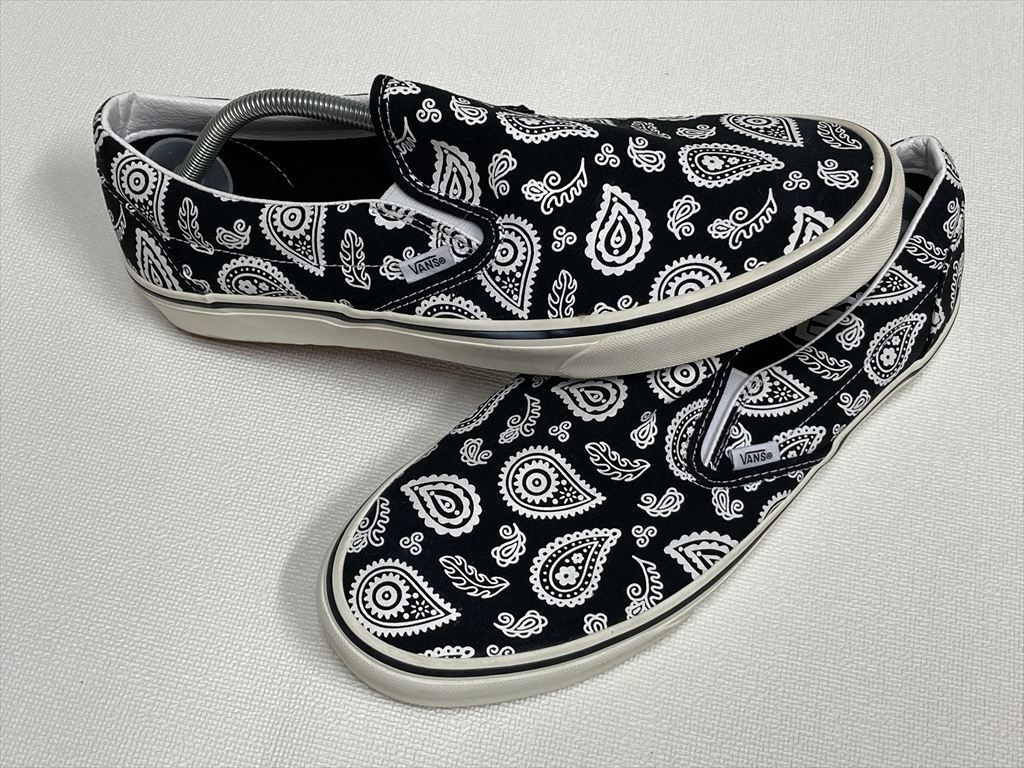 VANS SLIPON 黒 キャンバス 白 ペイズリー 総柄 US11.5 (29.5cm) アメリカ企画限定!! スリッポン バンズ