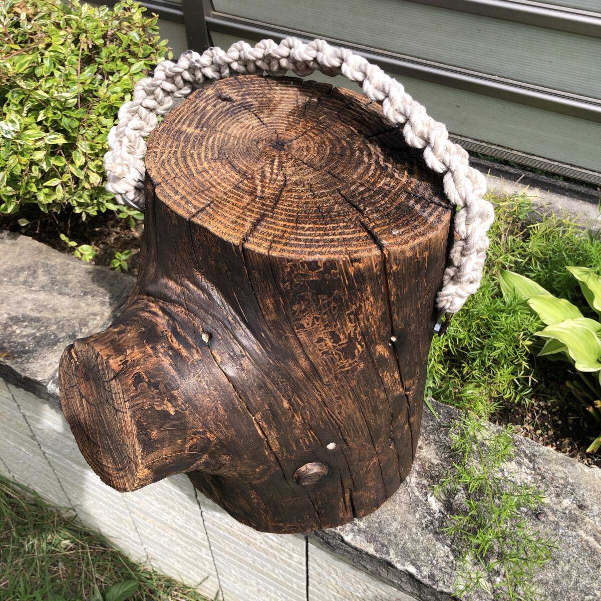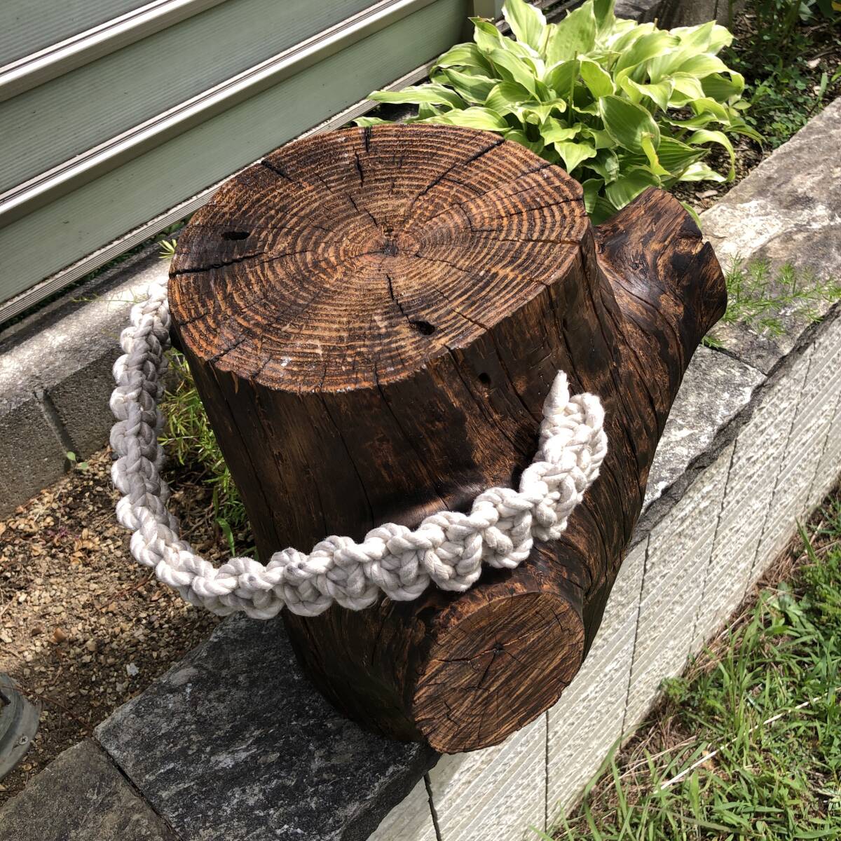 通常このサイズで、広葉樹の薪割り台だと重くて持ち運びに苦労しますが、針葉樹なので大きさの割に軽くて扱いやすいです。