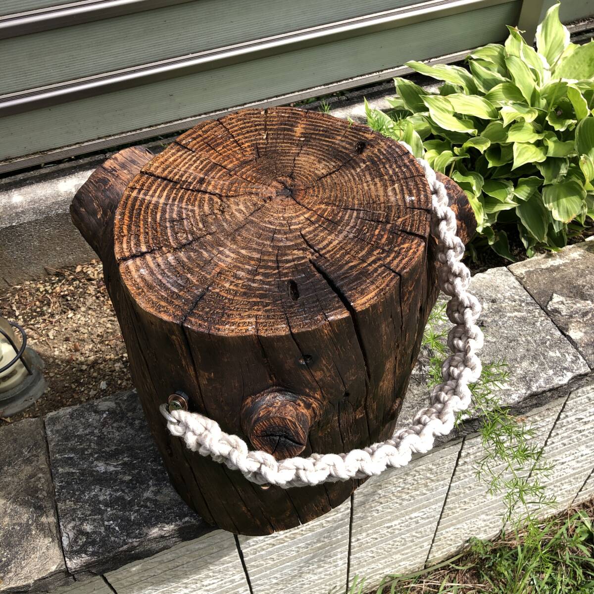 1年間自然乾燥させた松の丸太で作成した薪割り台です。