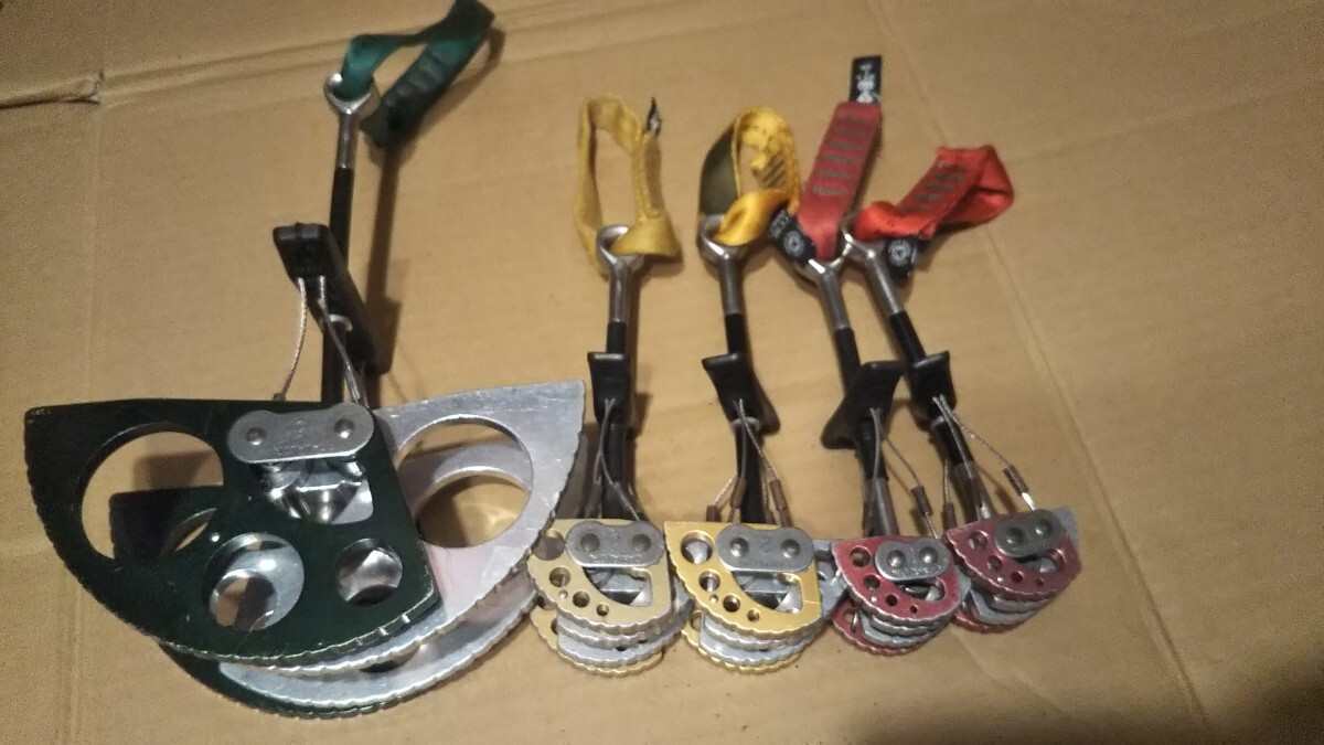 ブラックダイヤモンドのカムの5個セットです。譲って頂いた物も含み#5はグリップのワイヤーを止める箇所に紐で外れないように補強されています。多少スレ傷ありますが動作は比較的スムーズかと思います。中古品につきノークレームノーリターンにてお願い致します。宅急便60サイズにて発送致します。