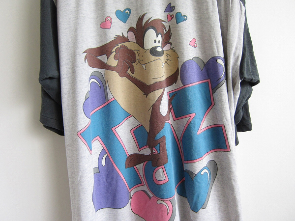 | 商品名 | 90's/ワーナー/Taz/タズ/フットボール/5分袖/Tシャツ/黒×グレー系【XL】タズマニアン・デビル/アメキャラ/ビンテージ/D140 |