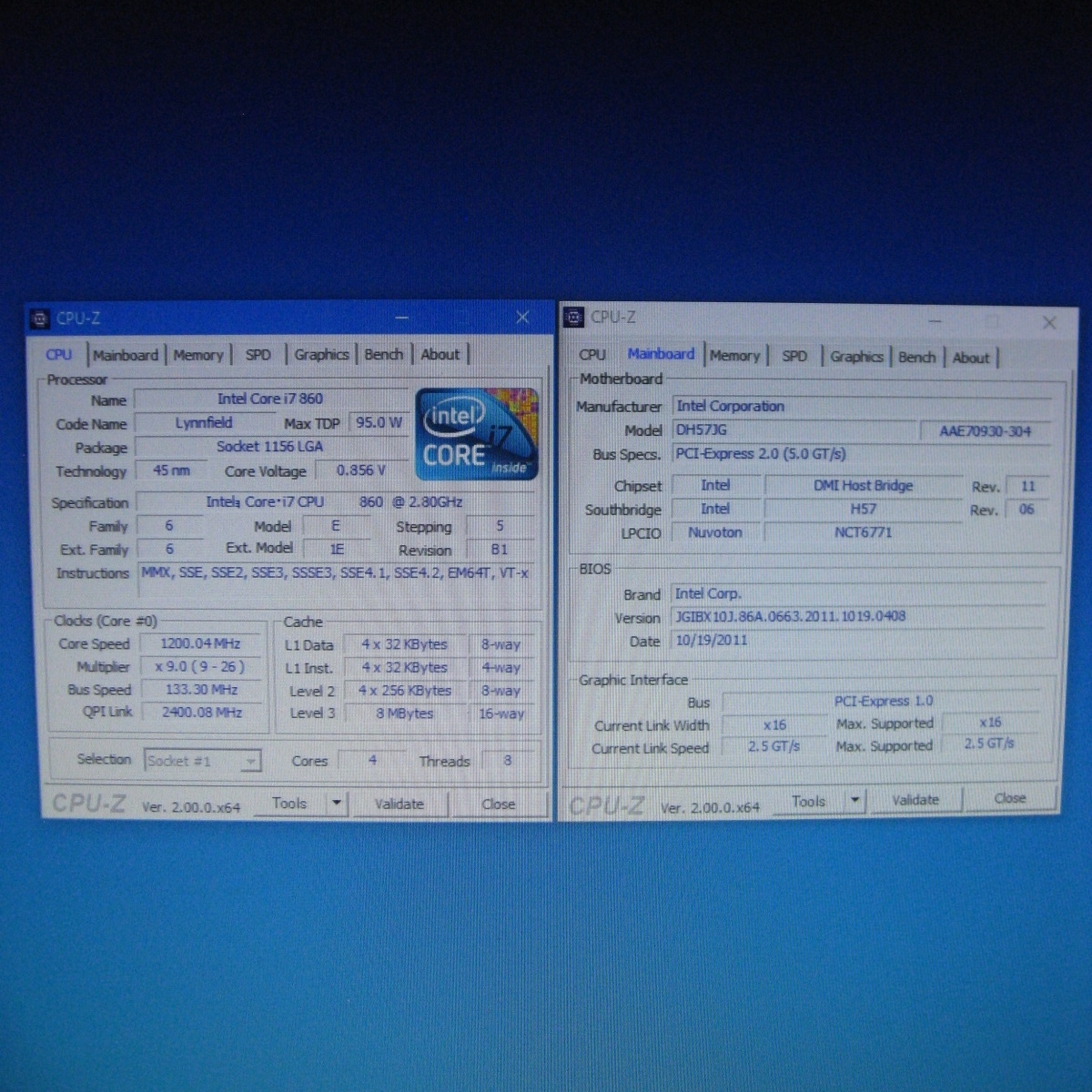 Intel DH57JG(JGIBX10J.86A.0663.2011.1019.0408) 動作確認済