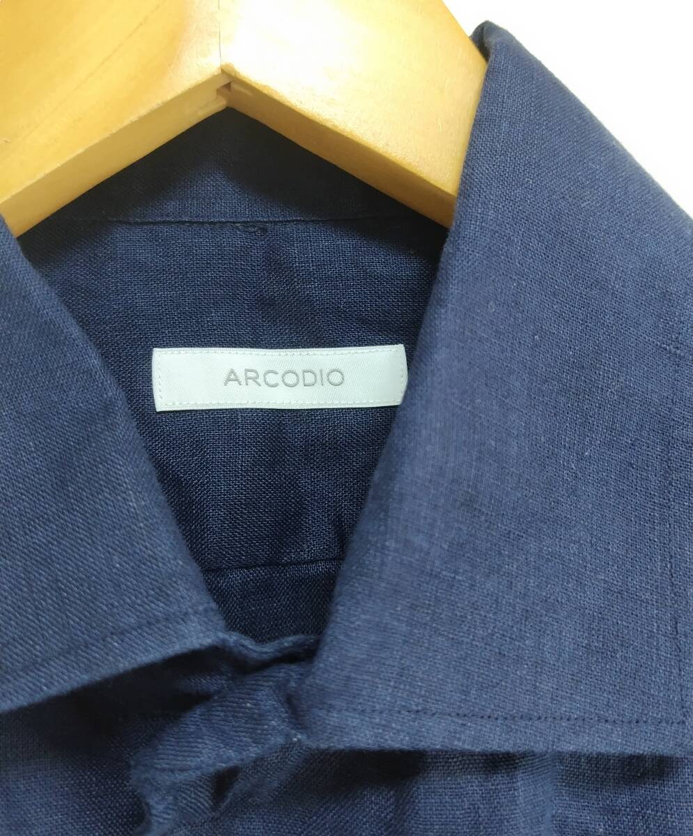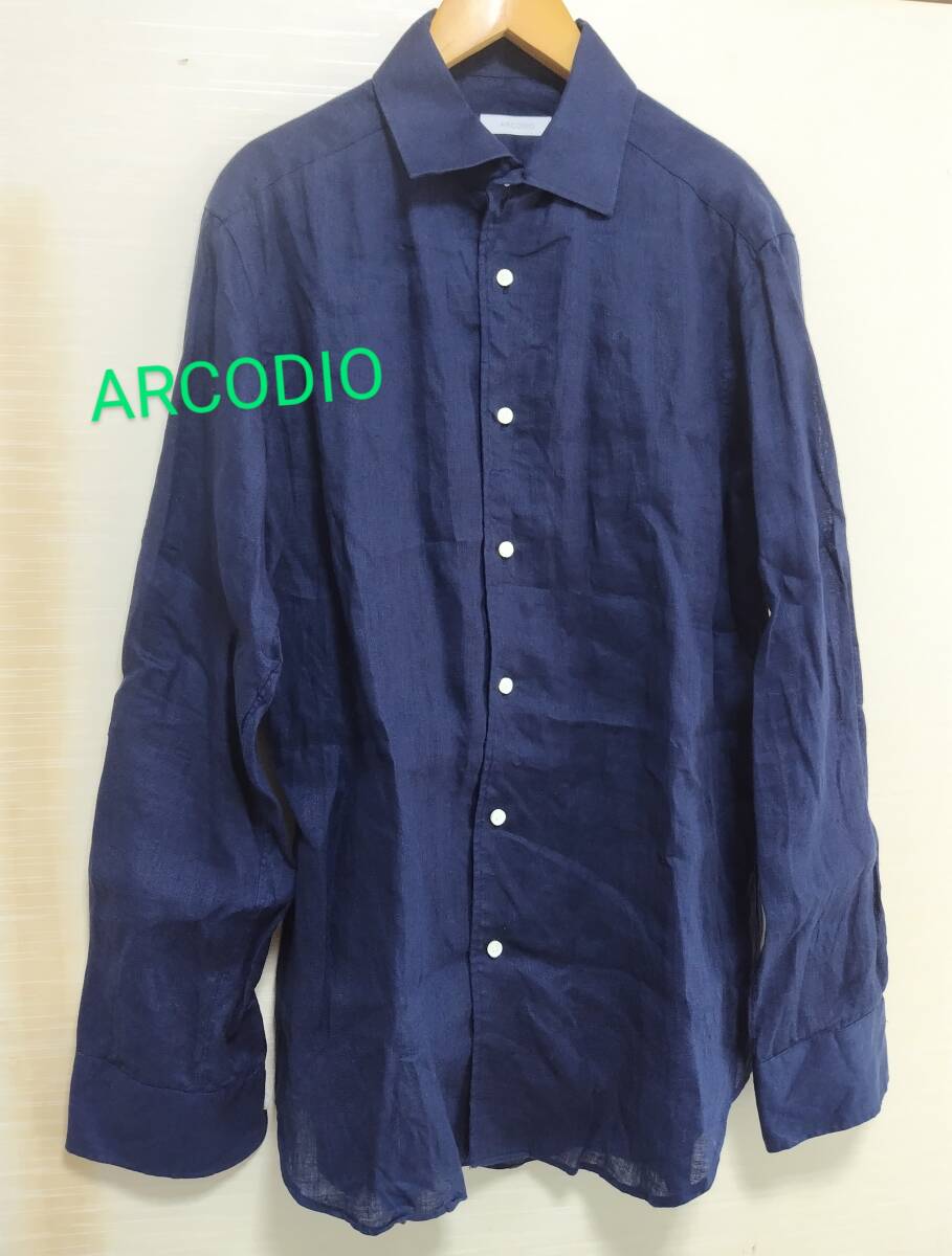 未使用 Arcodio アルコディオ 麻100% リネンシャツ 長袖シャツ 紺 ネイビー 39 M メンズ