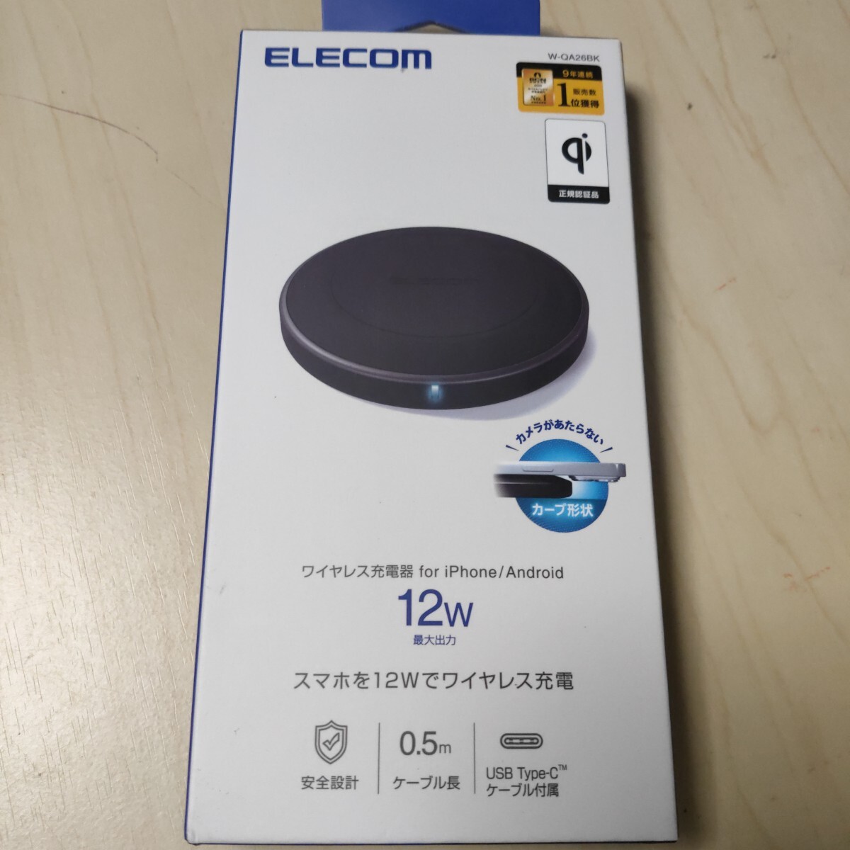 ◎ELECOM ワイヤレス充電器 Qi規格対応 ケーブル付属 0.5m 12/10/7.5/5W EPP規格ブラック W-QA26BK