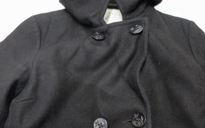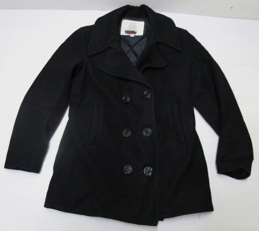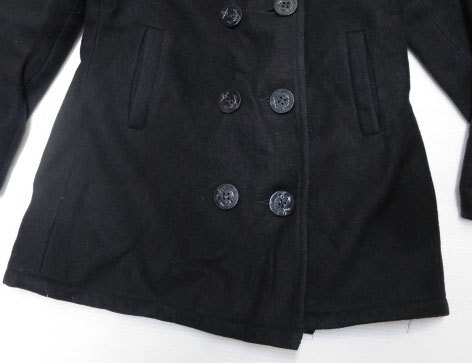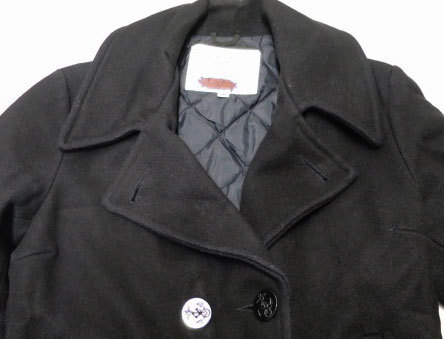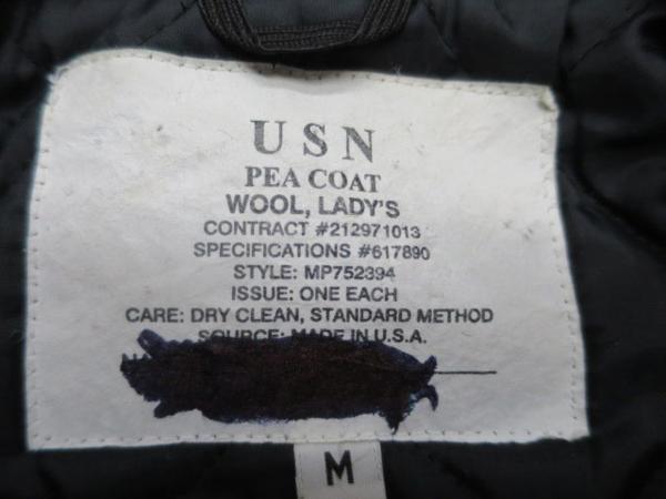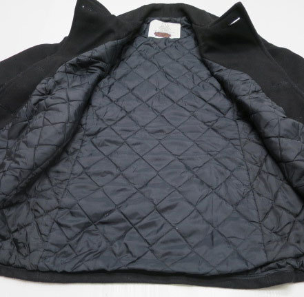 アメリカで買い付けましたアメリカ製USNのピーコートで素材は表記不明ですが表地はウールで裏地はナイロンの中綿入りの黒です。