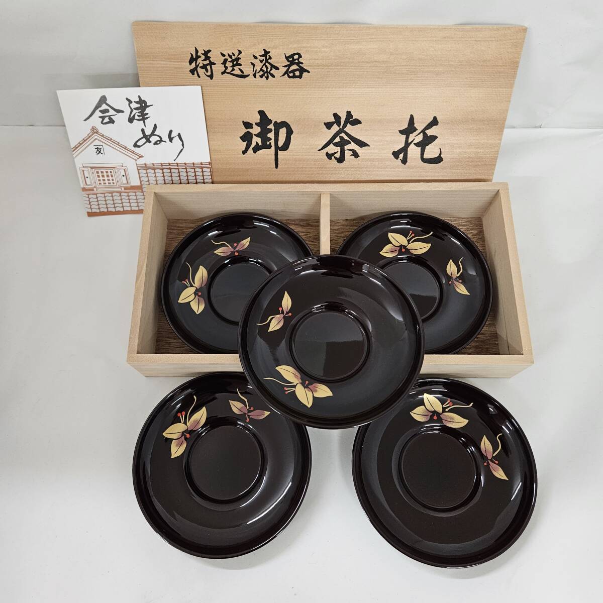 | 【外部-1063】会津ぬり 特選漆器 御茶托 5枚セット/茶器/箱あり(MS) |