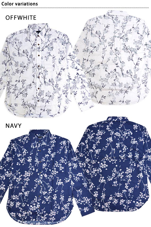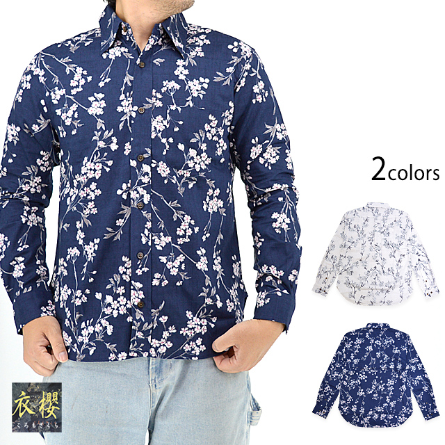 | レギュラーカラー長袖シャツ「枝垂れ桜」◆衣櫻 KSK-M09372 | |||||||||||||||||||||||||