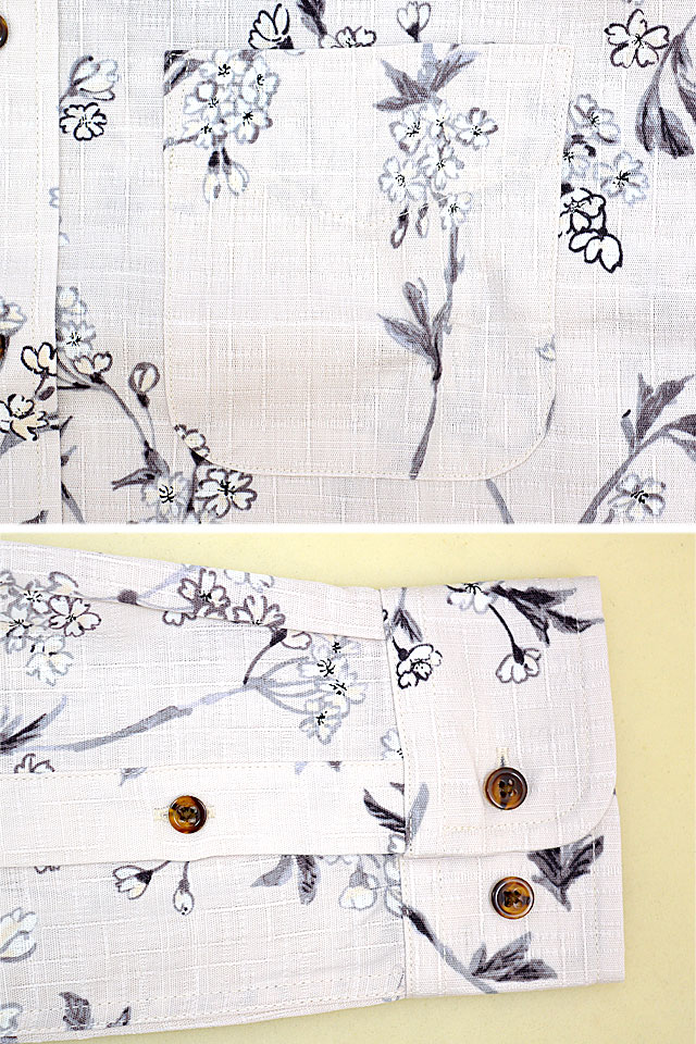 味わい深い物作りをされている衣櫻さんから、レギュラーカラー長袖シャツ「枝垂れ桜」(SA1640)のご紹介です。 枝垂れ桜をシャツ全体に落とし込んだ、上品な長袖シャツが登場しました! ボディーには、南十字星をイメージして織られたサザンクロス生地を採用。 裾は中央の長いセンタープリーツ仕様。 一枚で着るのはもちろん、ジャケットやカーディガンのインナーとして着用するも良し、Tシャツやタンクトップの上からさらりと前開きで羽織るも良し。 | |||||||||||||||||||||||||