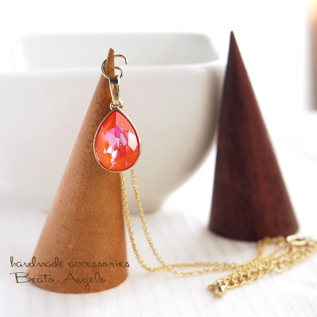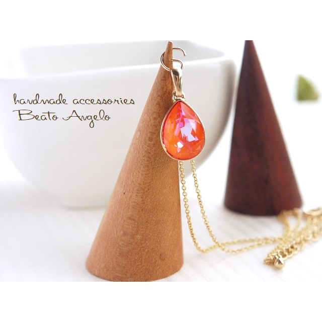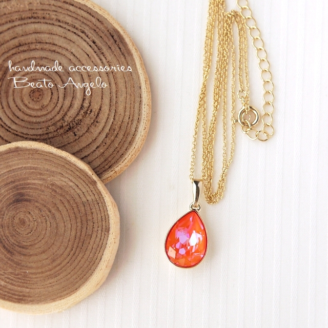 ◇◇+angelo+スワロフスキー 4320のネックレス(n-057) Cオレンジグローディライト G ※爪なし 一粒 ドロップ デザイン石座