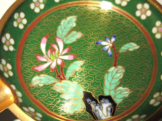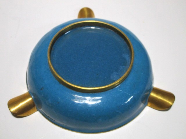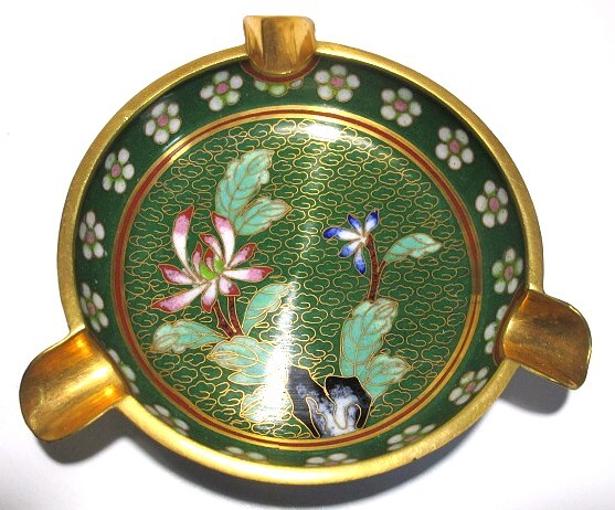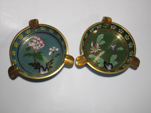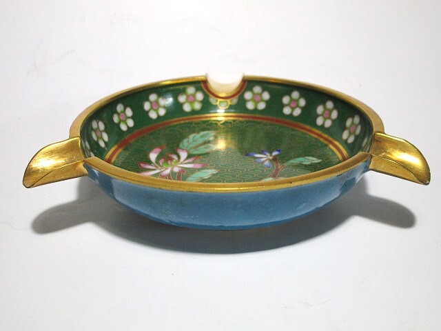 稀少アンティーク 未使用★七宝焼 灰皿 真鍮 草花紋 瑞雲 中国美術 銅胎琺瑯彩 有線七宝 美術工芸品 小物入れ コースター 置物 1個★b