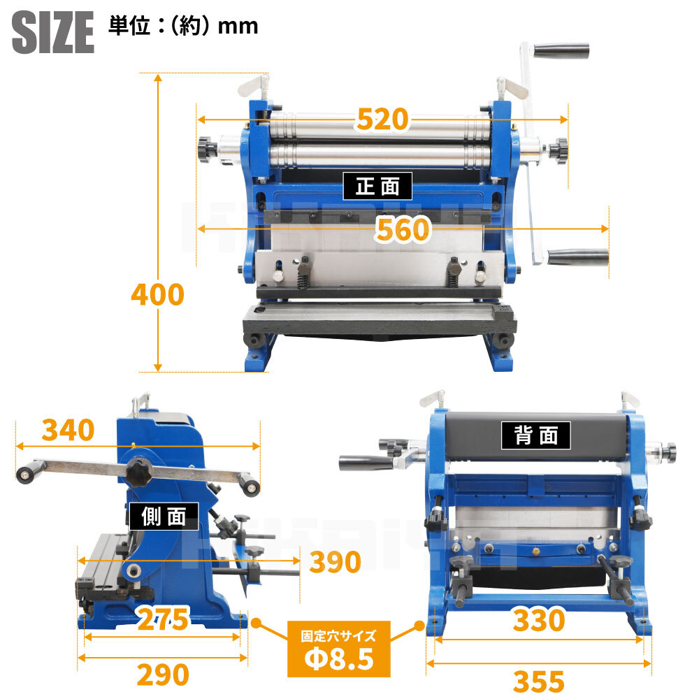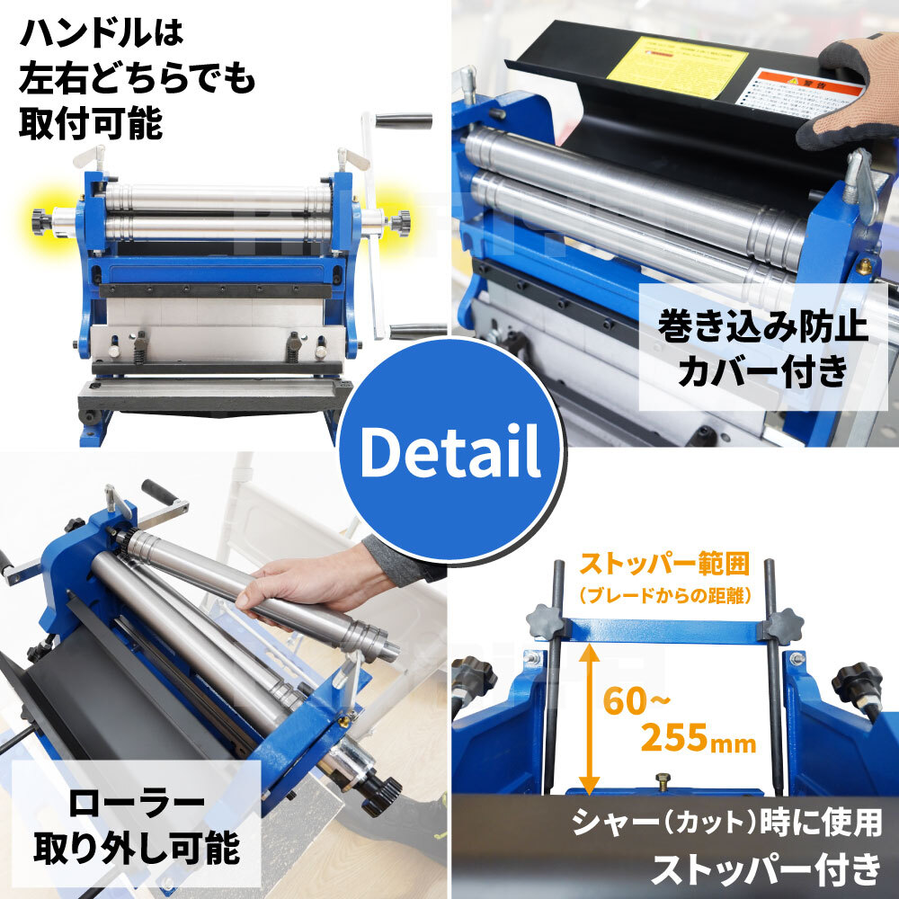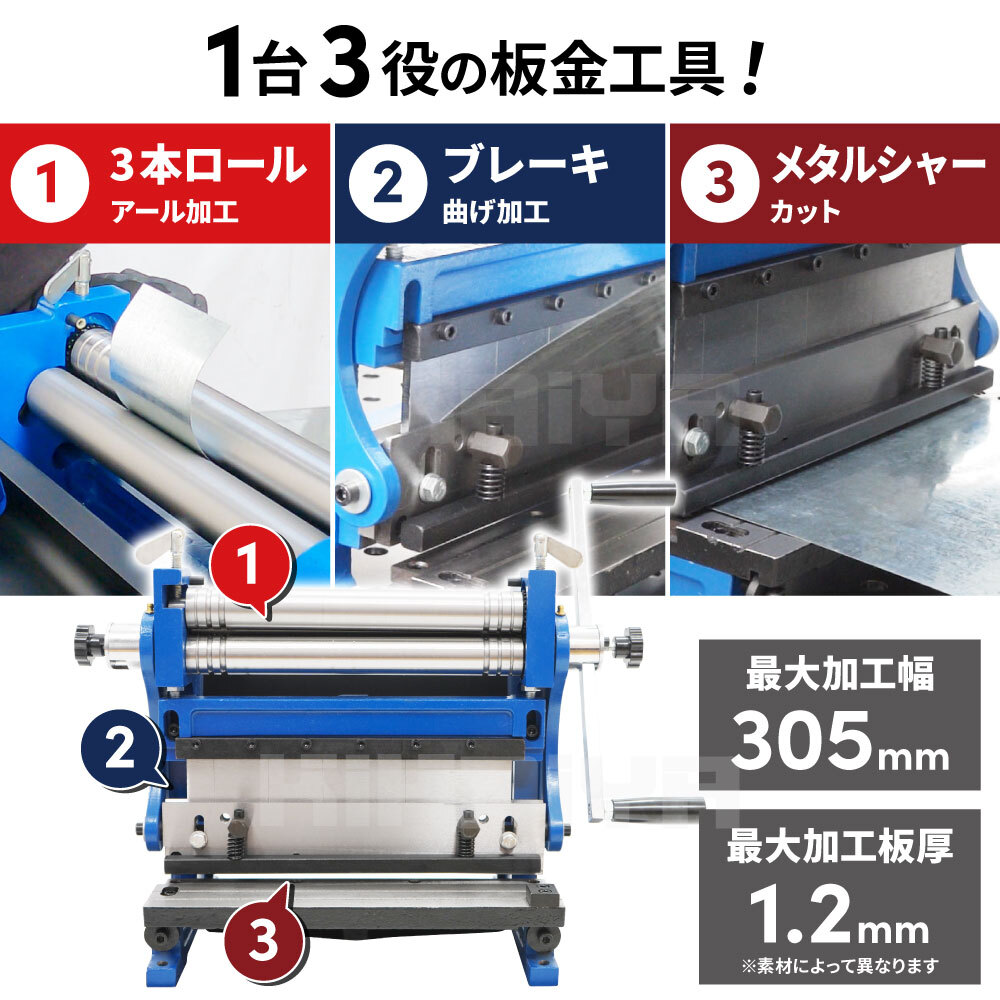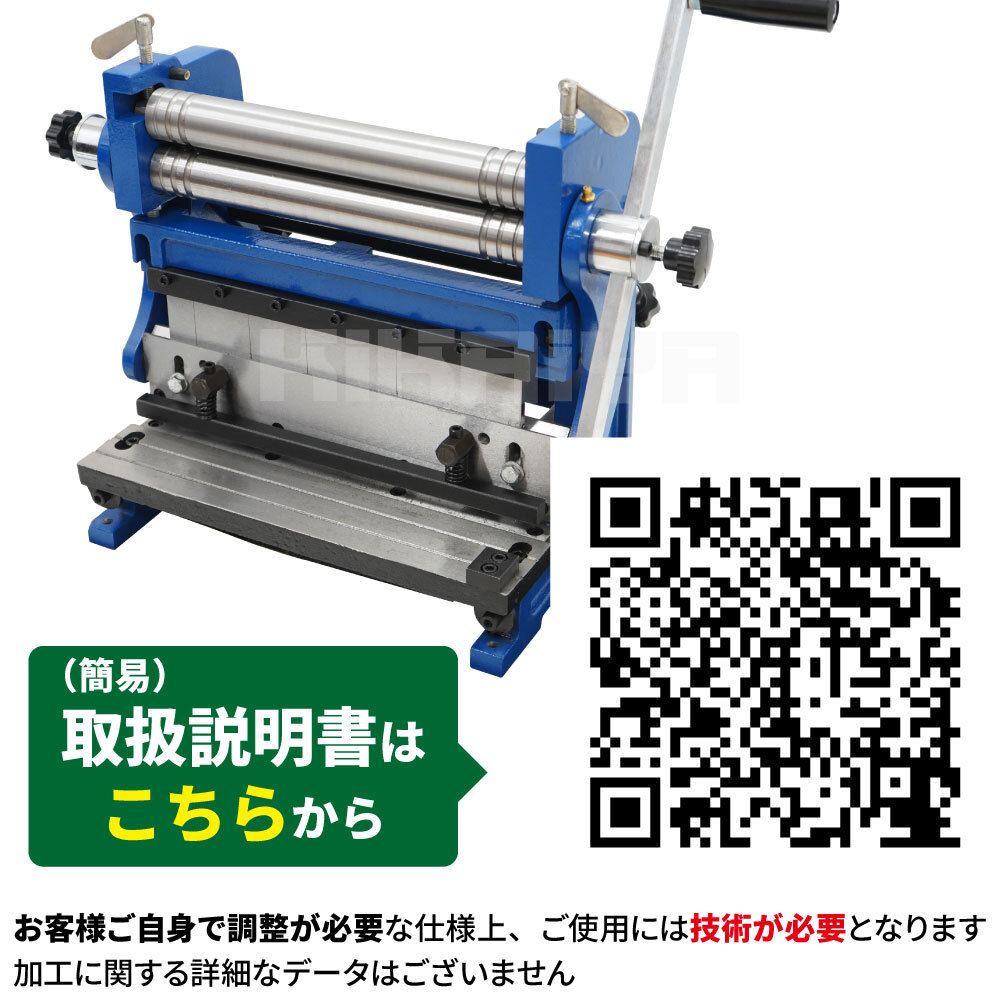 ●板金加工や自動車のボディーパネル/オリジナルパーツ製作などに重宝します ●1台でカット・ロール・ブレーキの3つの加工ができる省スペース製品 ●コンパクトサイズなので卓上への設置が可能です ※固定してご使用ください (固定に必要なボルト類は付属していません) ●この商品は輸入品の為、梱包時に防錆油を塗布しております |