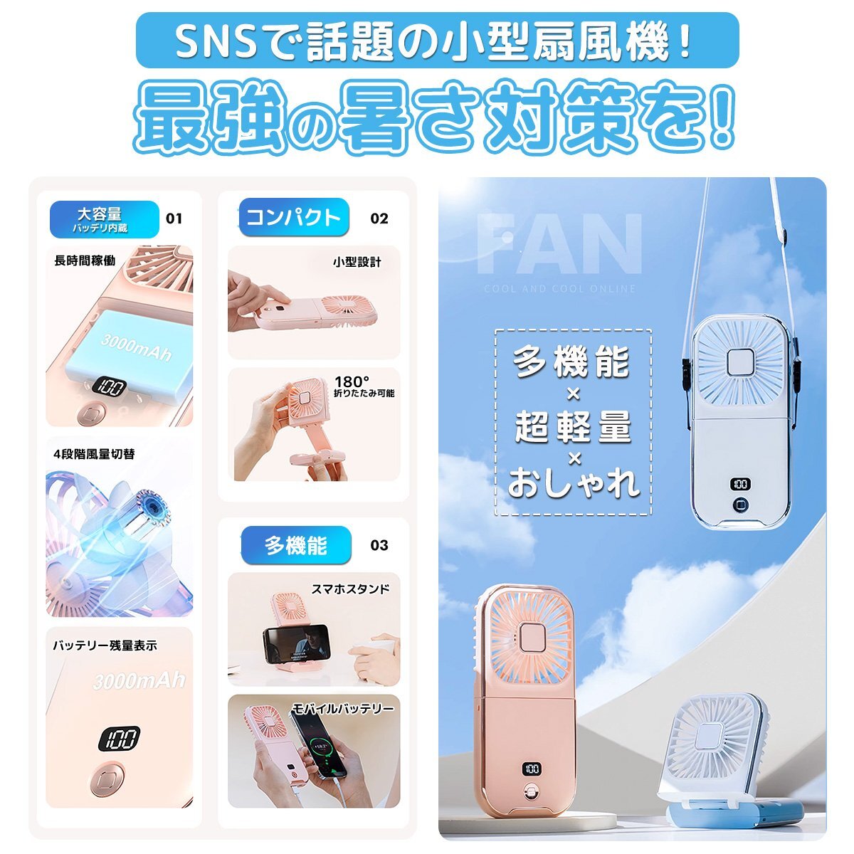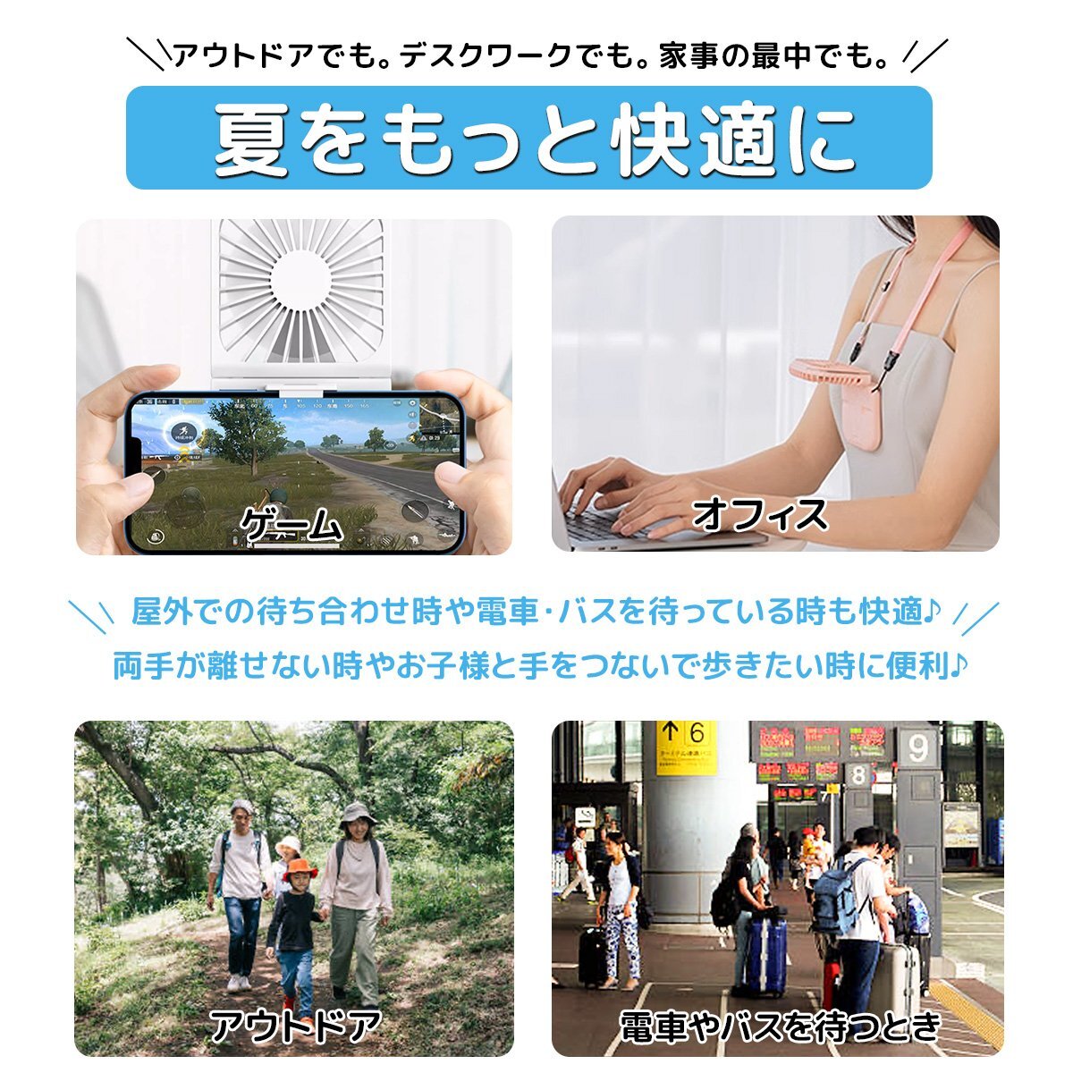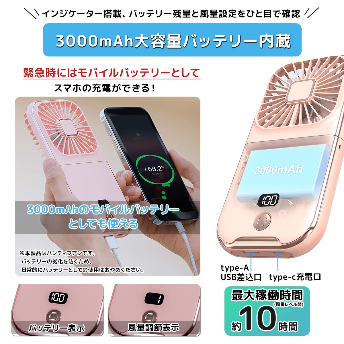 【全国一律送料無料】ハンディファン 携帯扇風機 手持ち扇風機 軽量 薄型 USB バッテリー 充電式 コンパクト スマホスタンド 首かけ 卓上