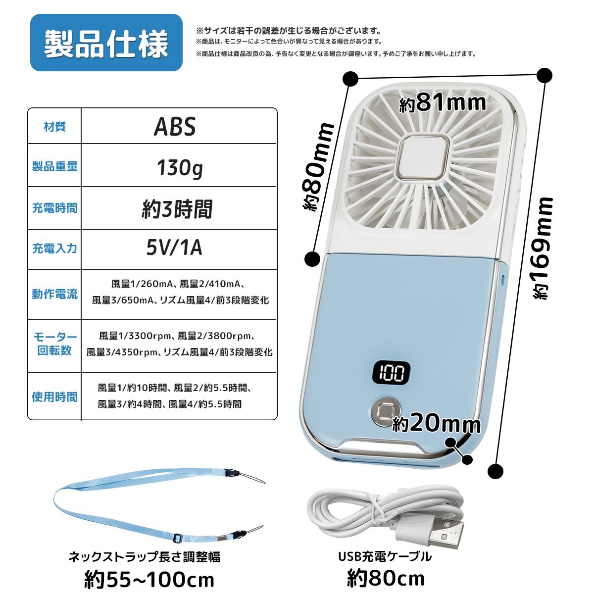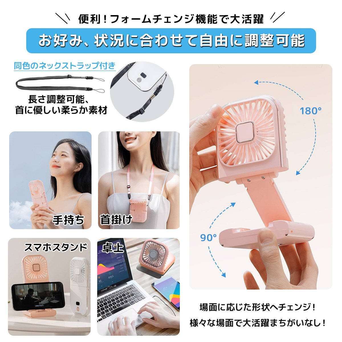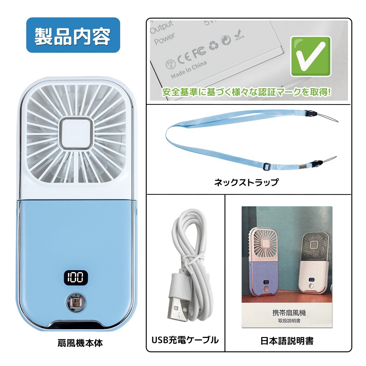 【全国一律送料無料】ハンディファン 携帯扇風機 手持ち扇風機 軽量 薄型 USB バッテリー 充電式 コンパクト スマホスタンド 首かけ 卓上