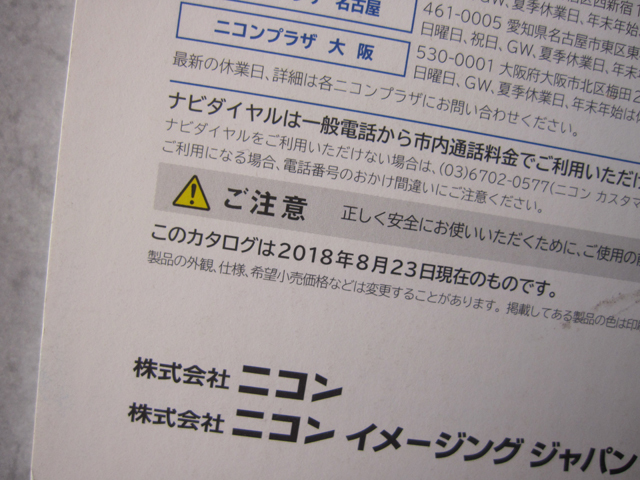 Nikon ニコン フルサイズミラーレス Z  Z7 Z6 カメラ カタログ パンフレット 2018年8月