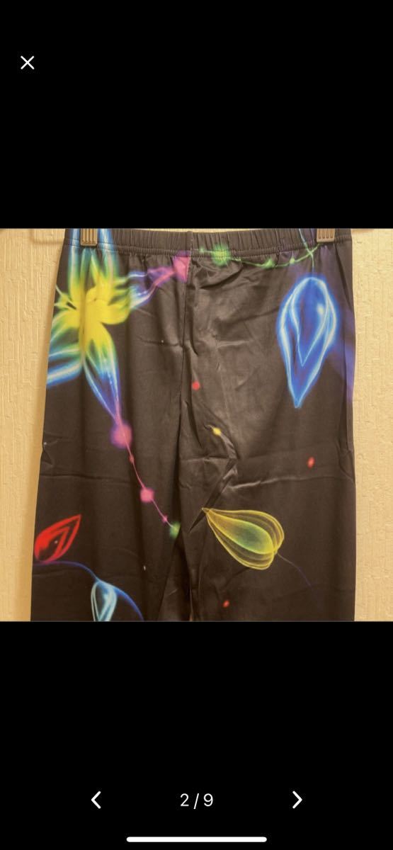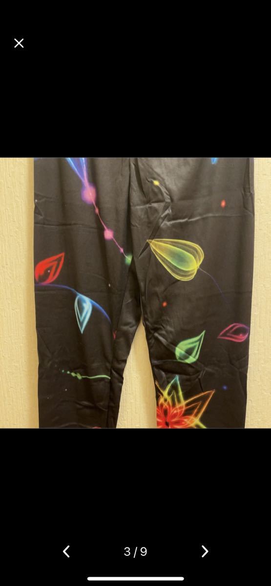 ★ブラック地のカラフルな星柄等のヨガウエアです。レギンスやホームウエア、スパッツ、レギンス、トレーニングウエアとしても使えます。