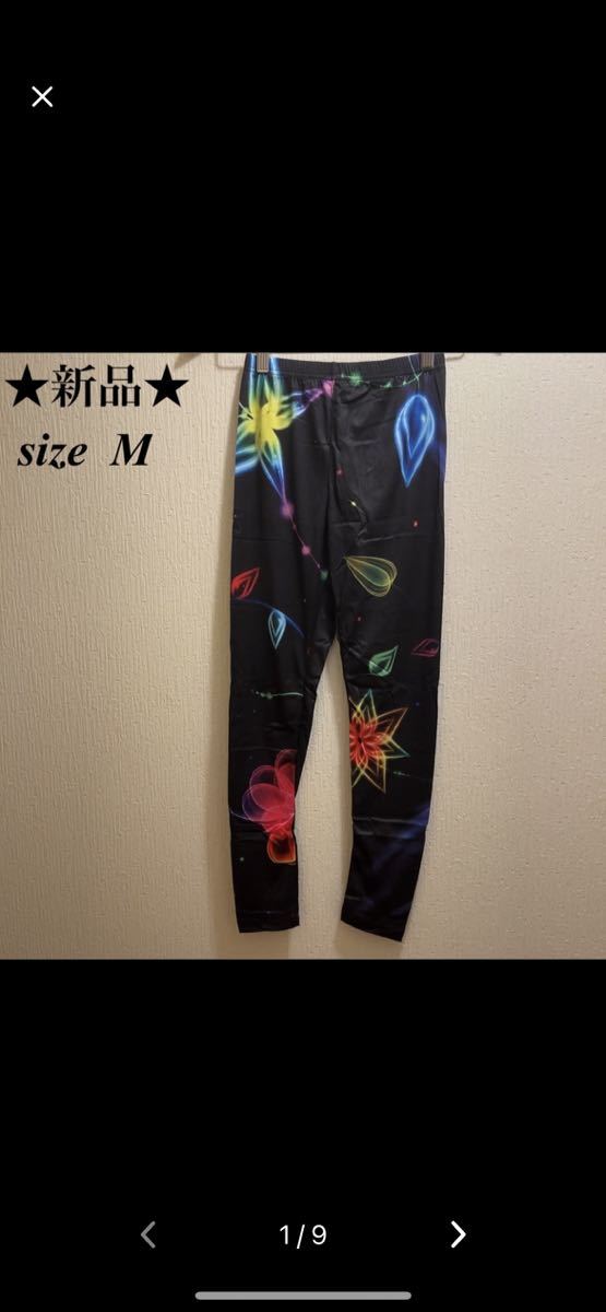 商品名 : 新品★ブラック★カラフル星柄★ヨガウェア★トレーニング★レギンス★ホームウェア★M