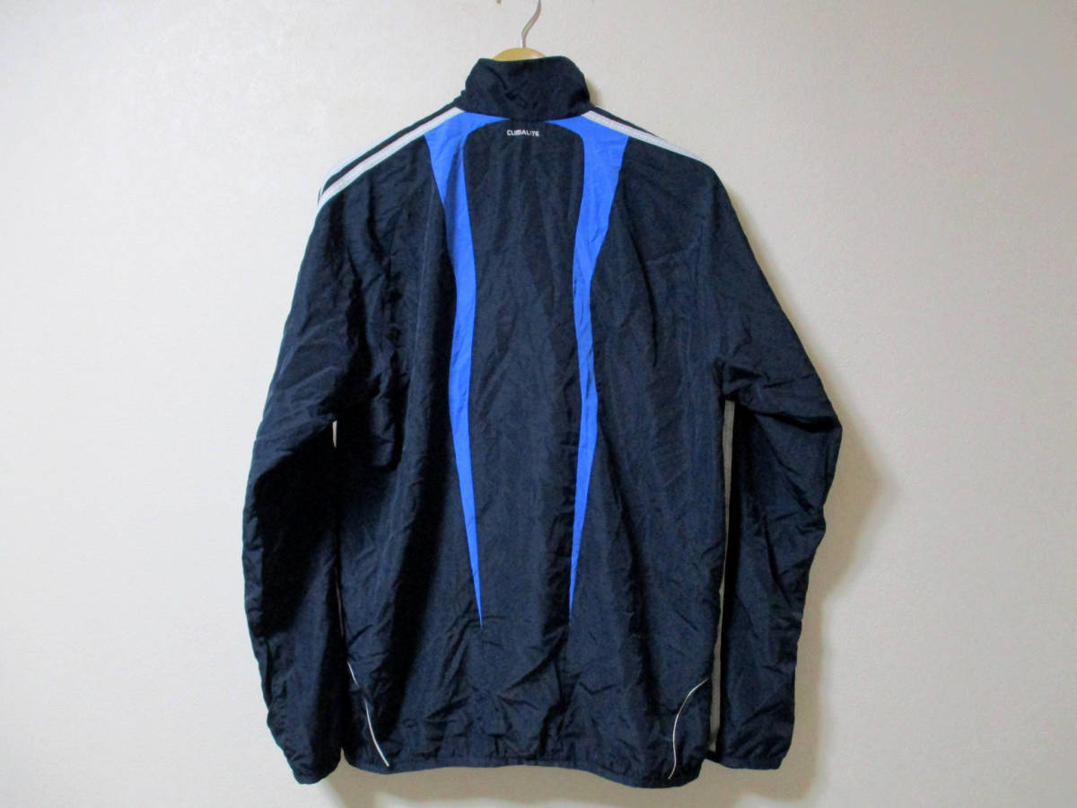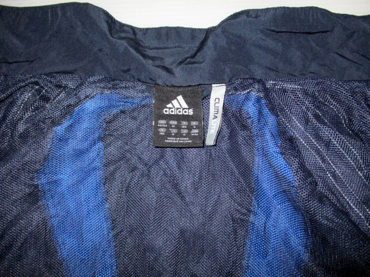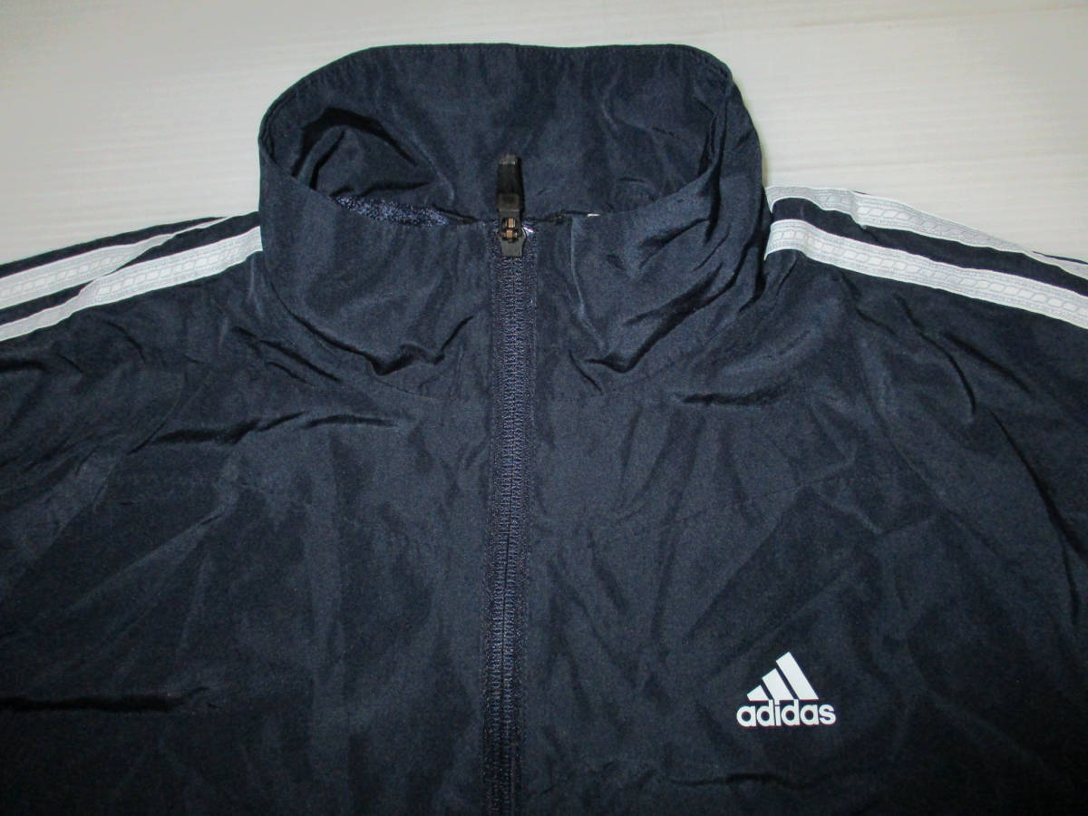 adidas アディダス ナイロンジップアップジャケット 紺 サイズO です。アディダスジャパン株の本物です。素材は表生地 ポリエステル100,裏生地ポリエステル100です。ジャケットの実の出品です。