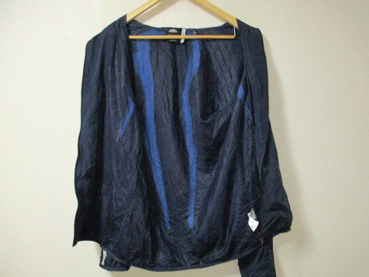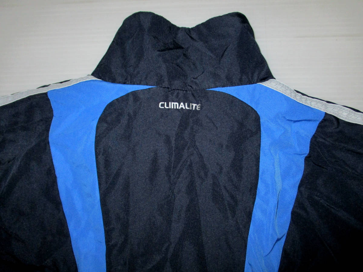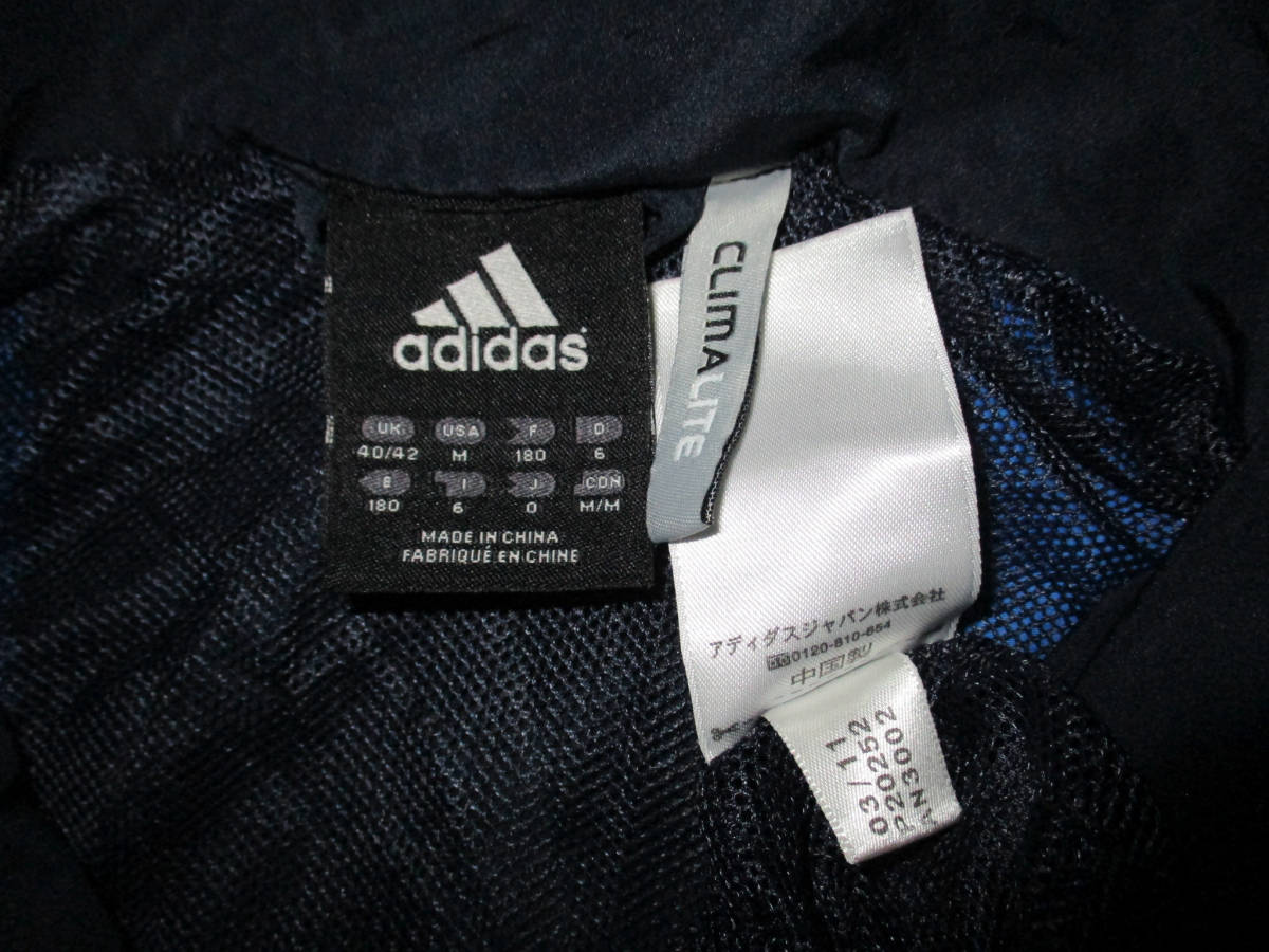 adidas アディダス ナイロンジップアップジャケット 紺 サイズO です。アディダスジャパン株の本物です。素材は表生地 ポリエステル100,裏生地ポリエステル100です。ジャケットの実の出品です。