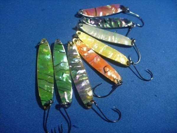 | 商品説明 | アワビカラーのスプーン 8色・8個セット になります。 新品です。 やはりこの独特のアワビ模様がいいようです。 アワビが発する自然な反射が魚を誘います。 約5g 4.5㎝ パッケージ入り新品です。 お得な8個セットの価格になります。 |