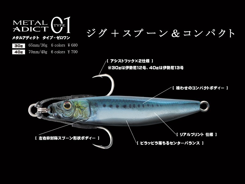 リアルな見た目だけでなく、ベイトに近いサイズ感、フォルム、喰わせのアクションが揃ったハイパフォーマンスメタルジグです!