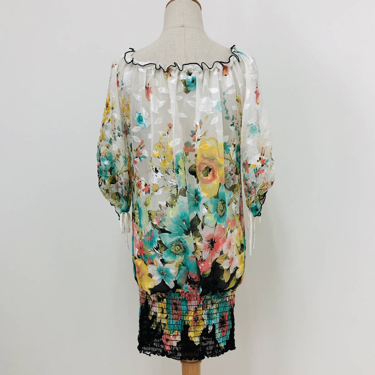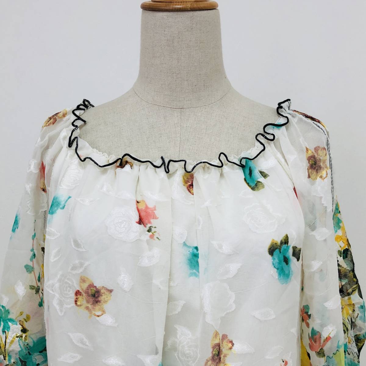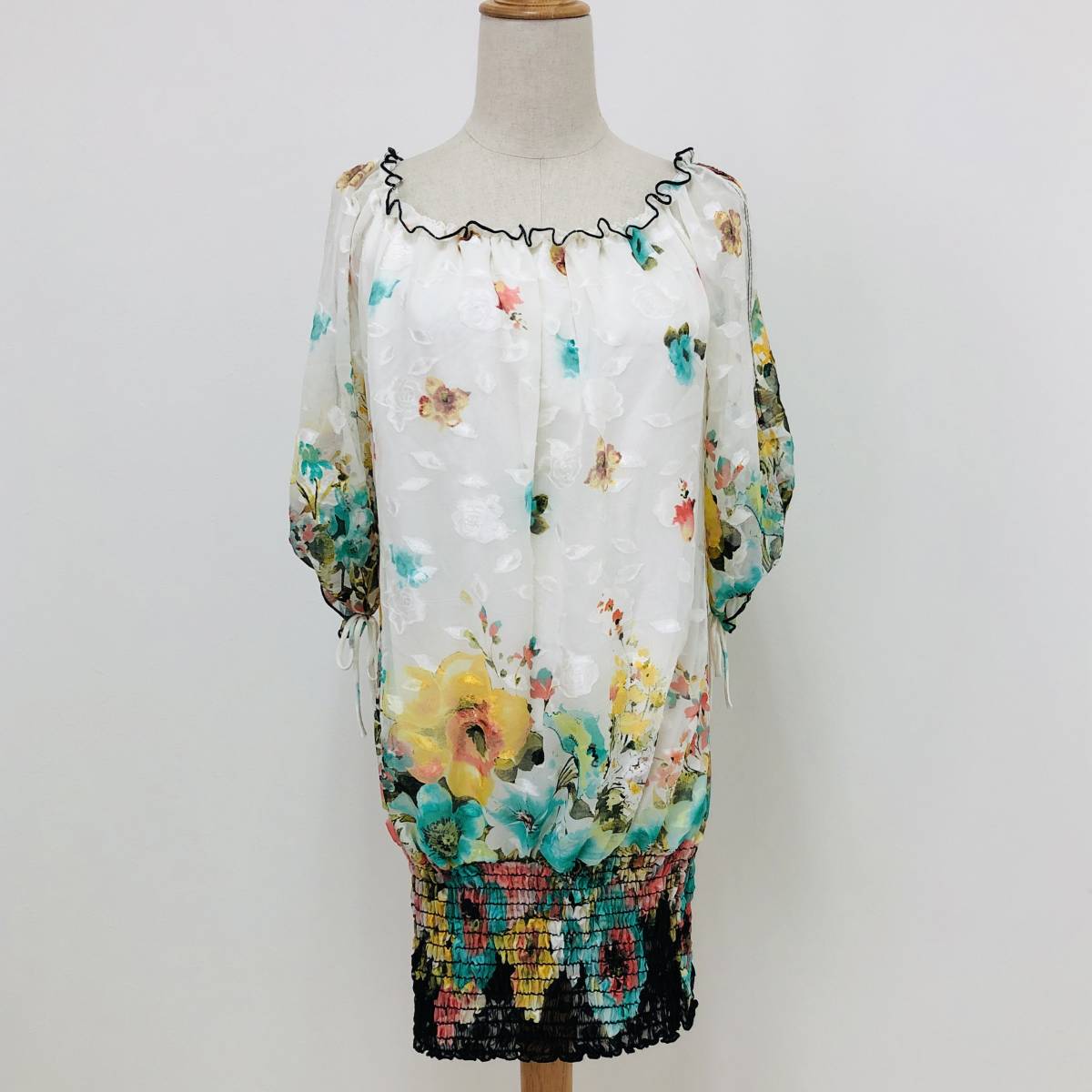 k1400 美品 True Light ワンピース 半袖 薄手 透け感 オフショル シャーリング 花柄 レディース ガーリー フェミニンフローラルスタイル