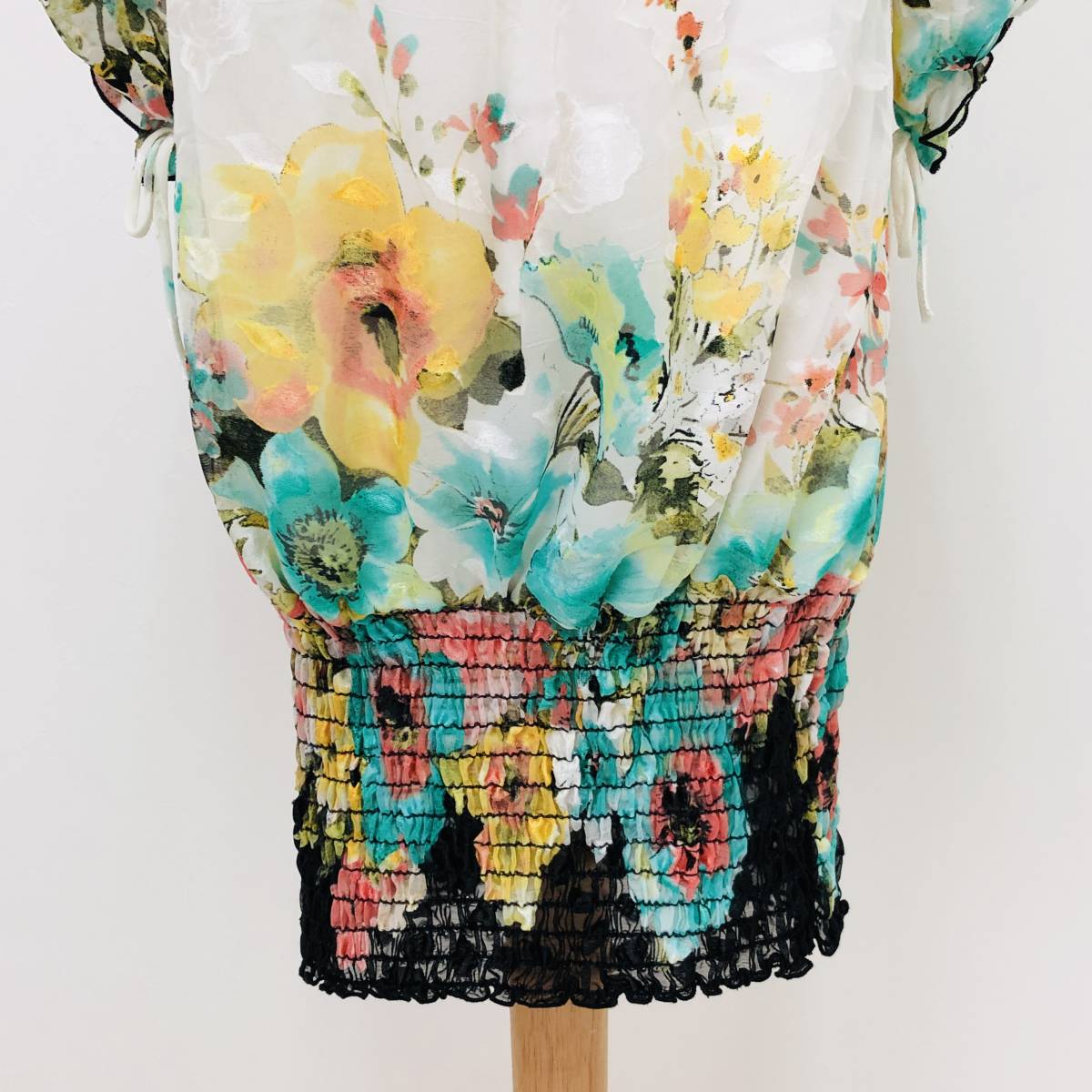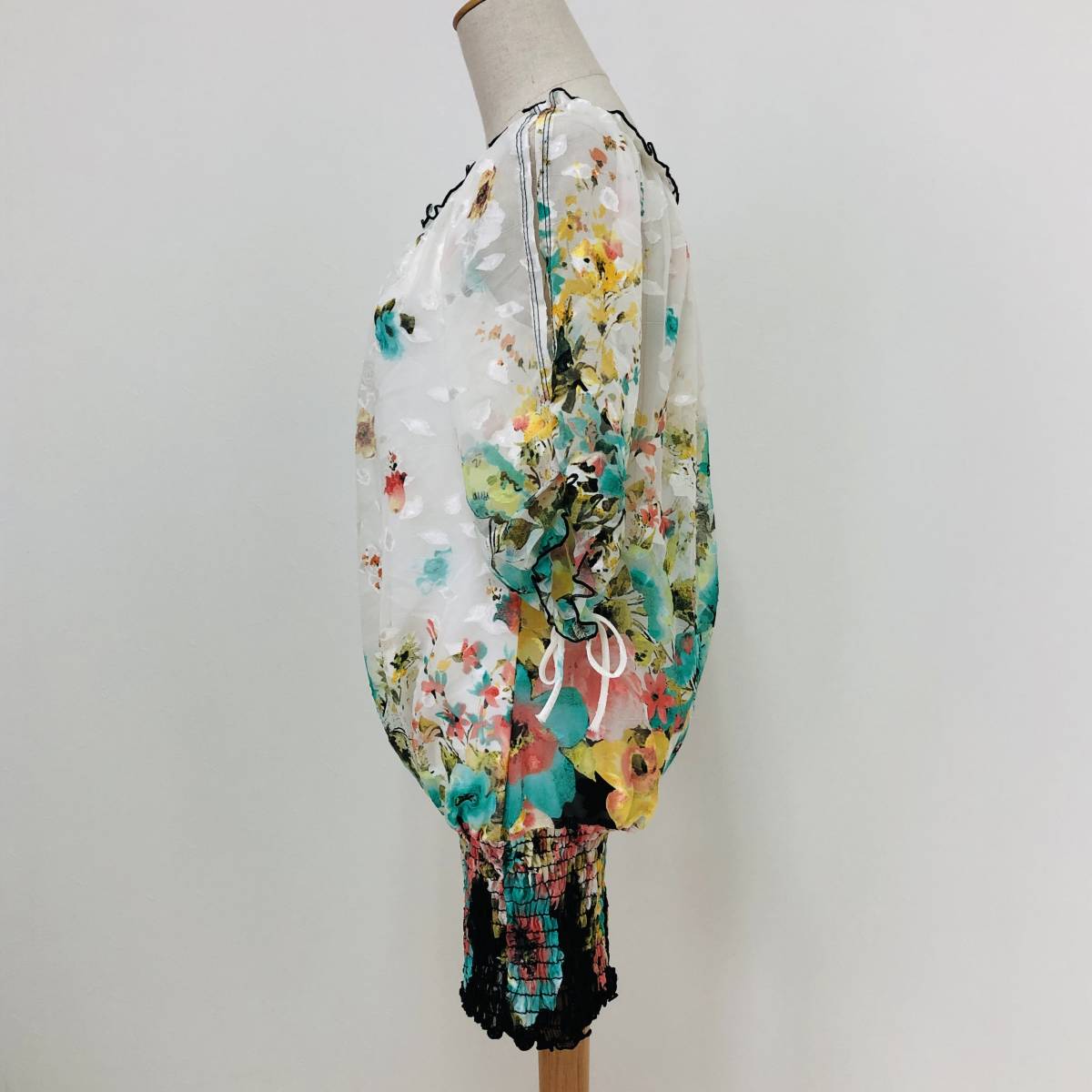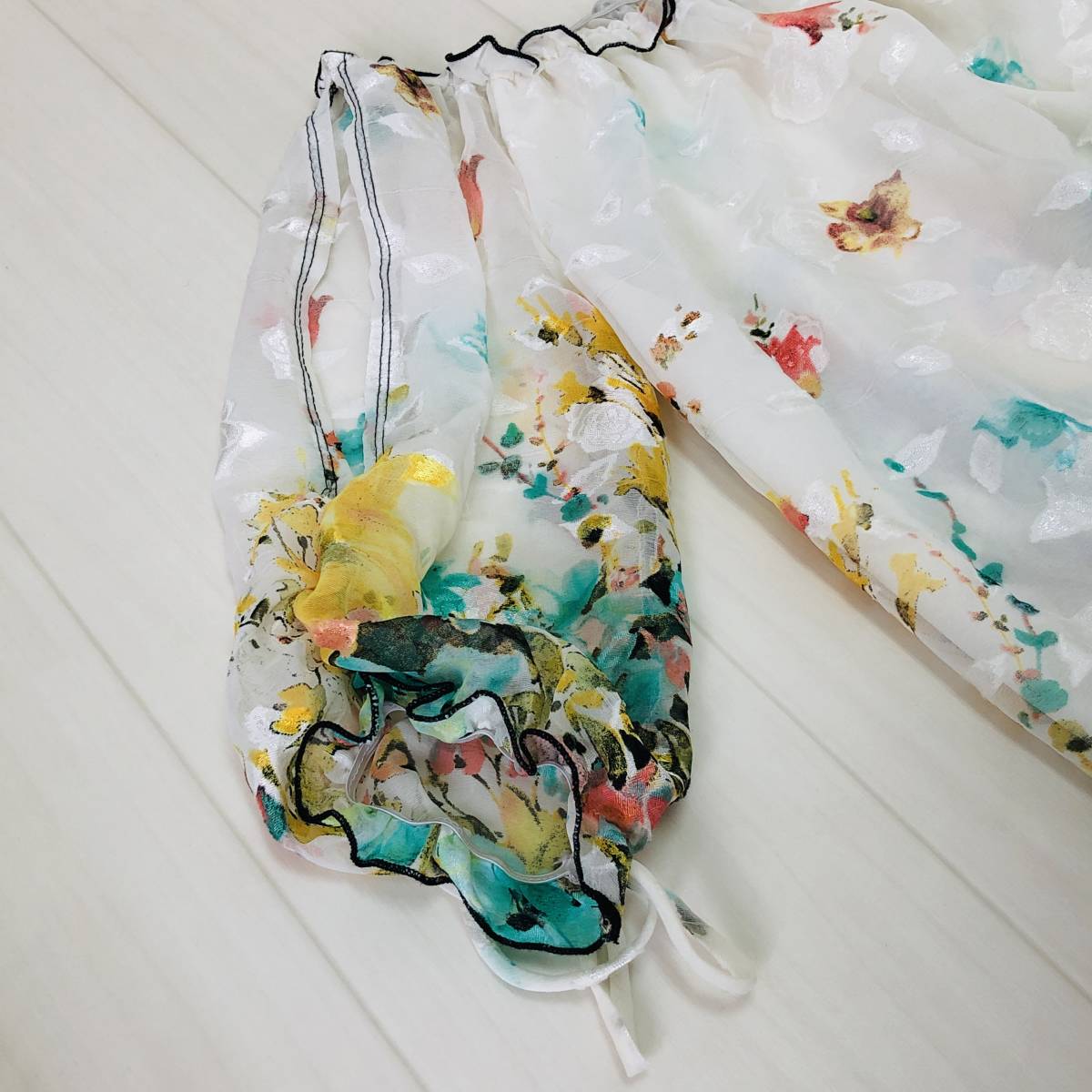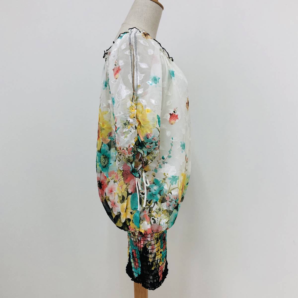 k1400 美品 True Light ワンピース 半袖 薄手 透け感 オフショル シャーリング 花柄 レディース ガーリー フェミニンフローラルスタイル