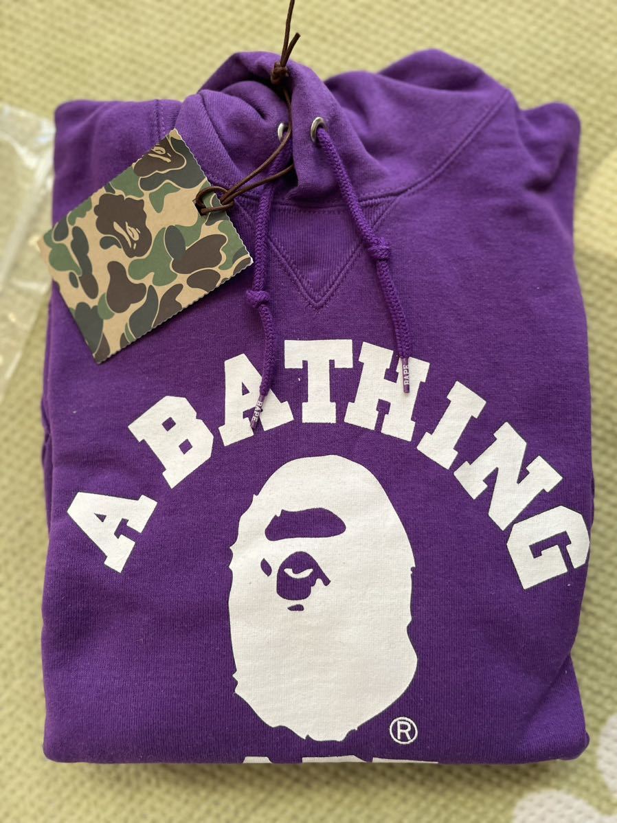 A BATHING APE カレッジロゴ スウェットパーカー パープル Sサイズ新品未使用品の出品になります。