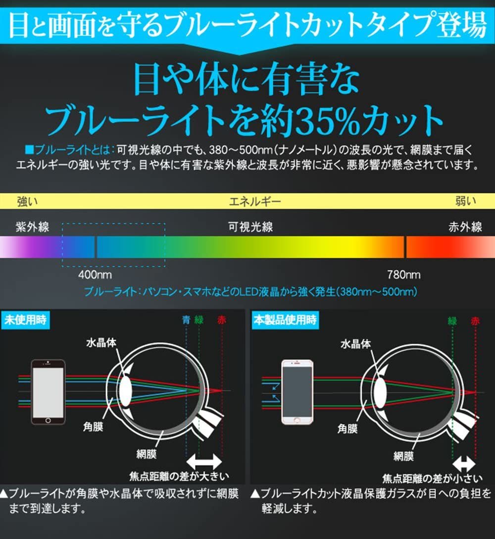 【表面硬度9 H 】日本産ガラス使用。、フィルムより3倍の強度。