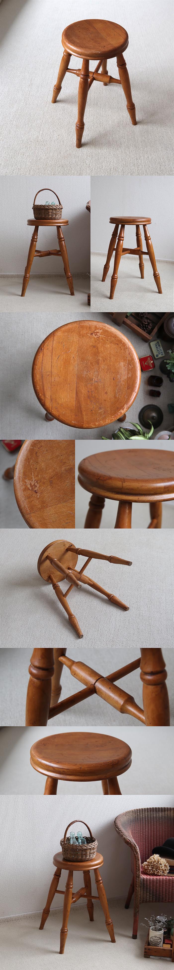 イギリス アンティーク スツール 木製椅子 丸イス カントリー ナチュラル 家具「花台にも」T-947