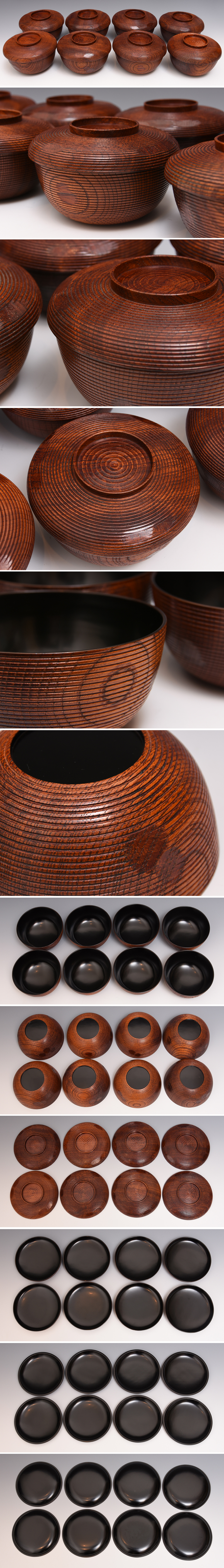 平安 侘吉(造)糸目時代塗ハツリ糸目蕎麦椀8客 共箱 懐石道具 茶道具 茶懐石 天然木 漆工芸 漆芸 木工芸 会席 |