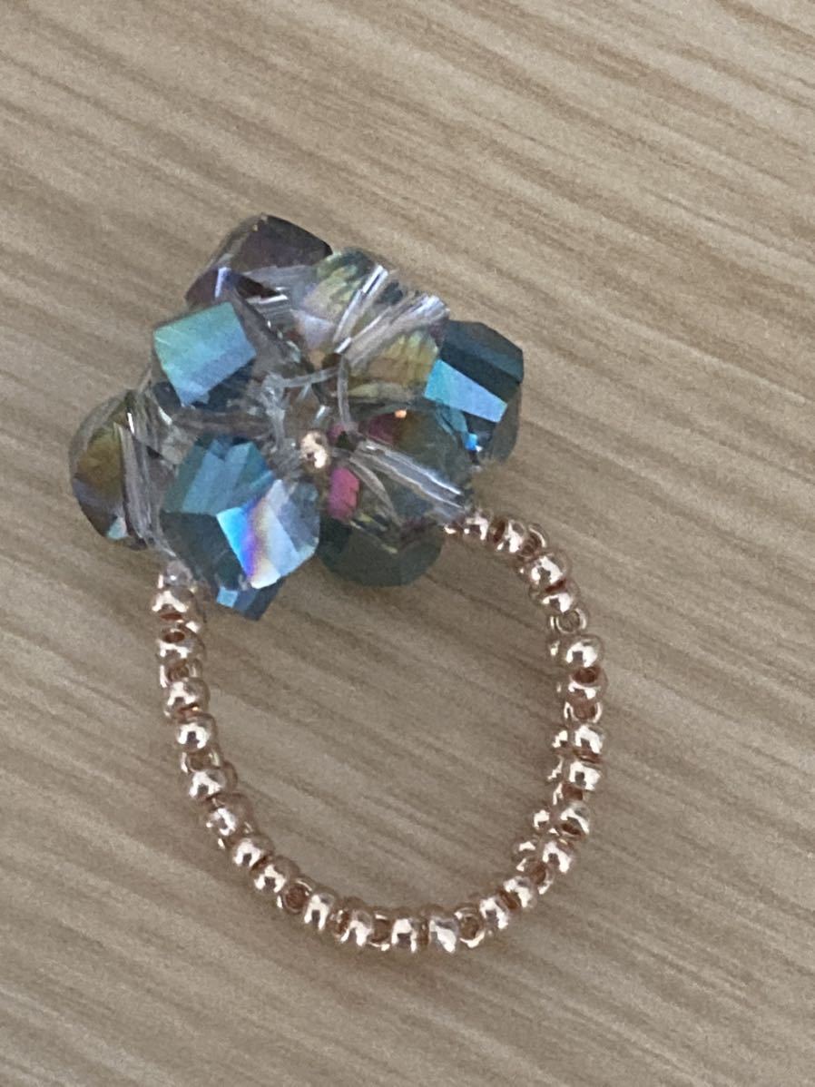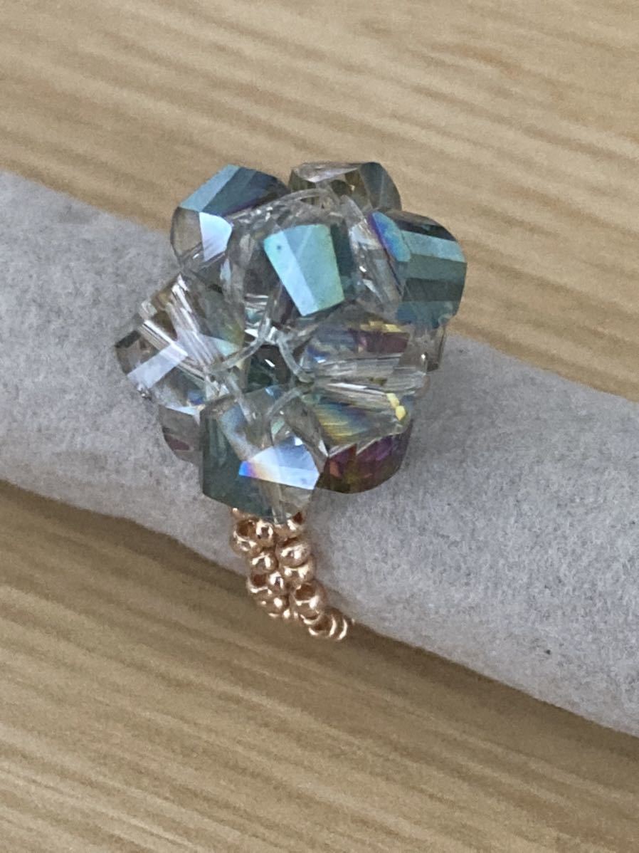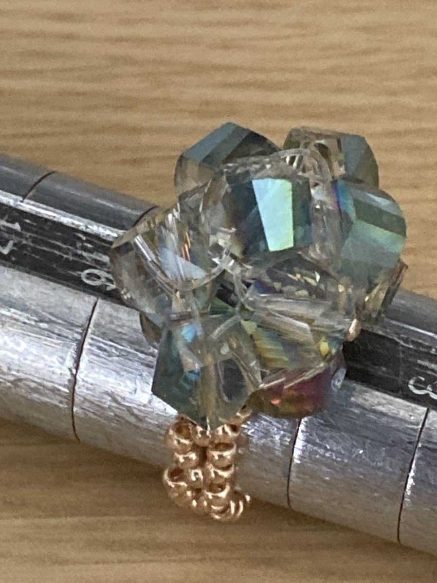 素材パーツ ガラスカットビーズ(AB)11ケ 丸小ビーズ(金)
