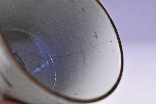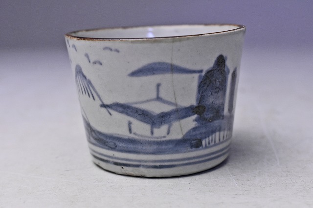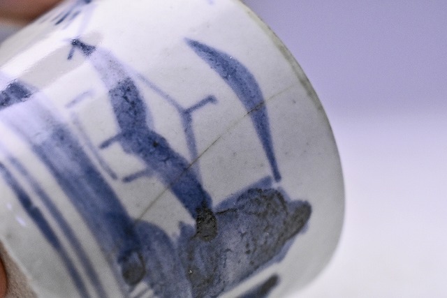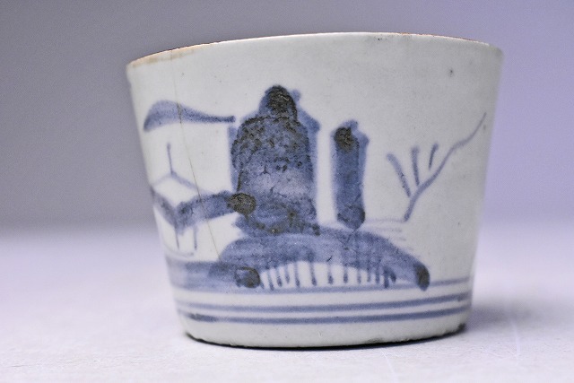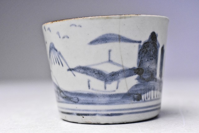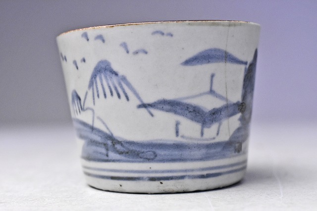 古伊万里 そば猪口 です。 山水文 に 広さを 感じる 逸品です。 ヒビがあります。 箱はありません。